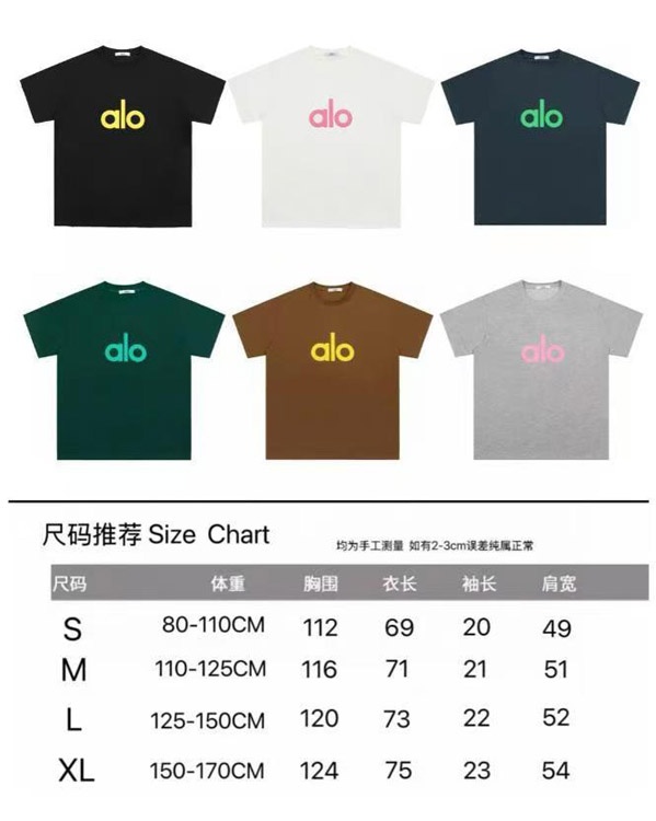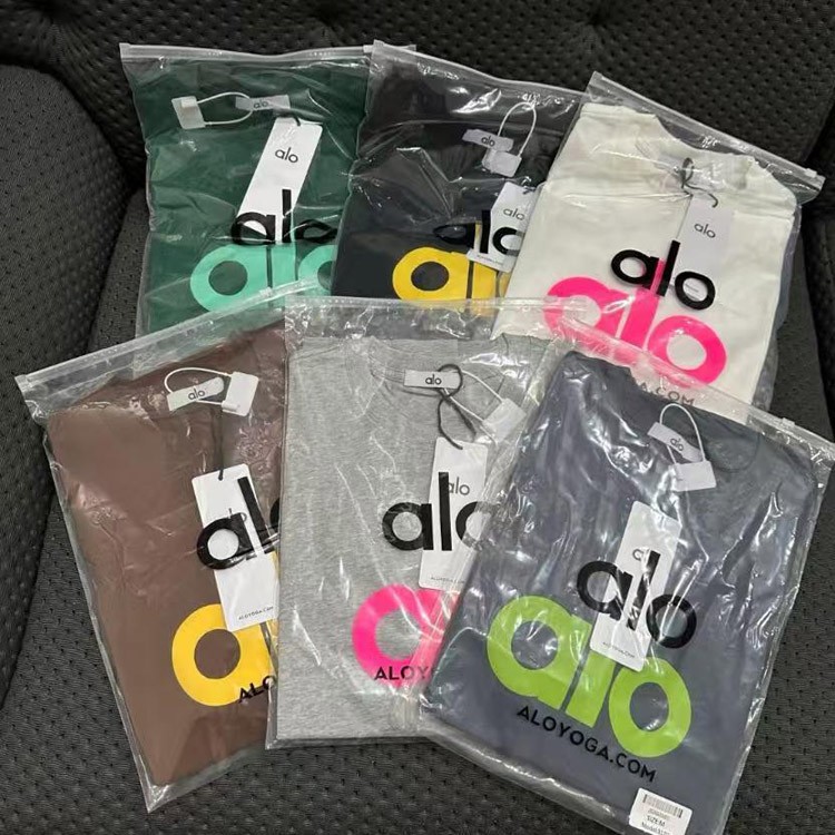 Home > ALO Foamed Letter Hot Stamped Silver Short-Sleeved Crew Neck T-Shirt-5096