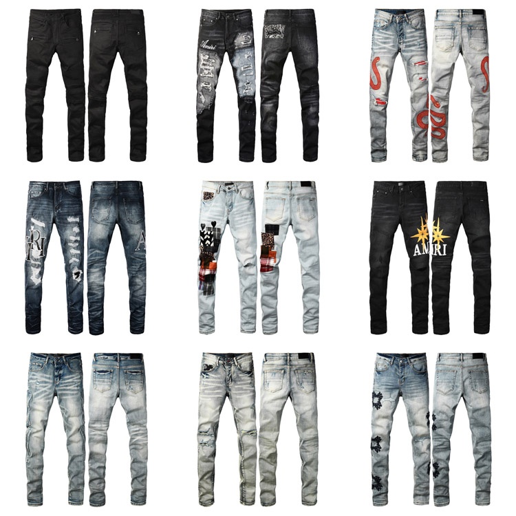 AMIRI neue Buchstabe LOGO gerissen Patch slim-fit skinny jeans-4253
