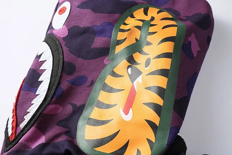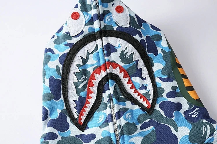 BAPE Colorblock fluoreszierende Hai Serie Kapuzen Sweatshirt Jacke-4243