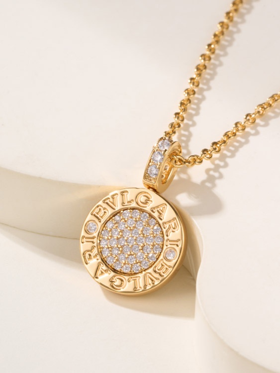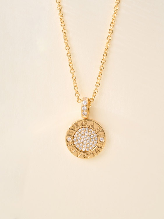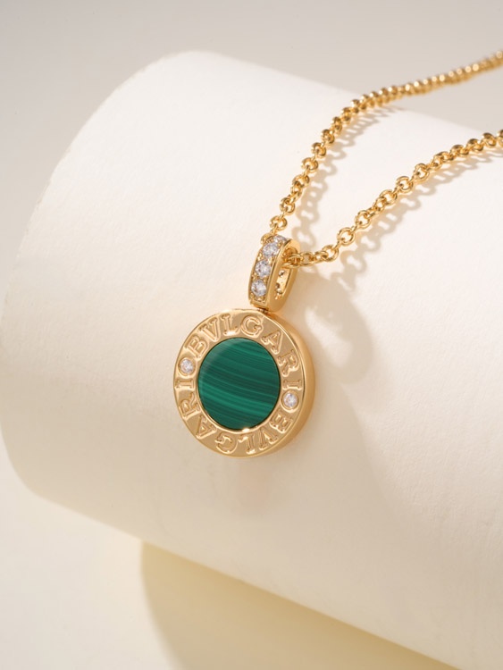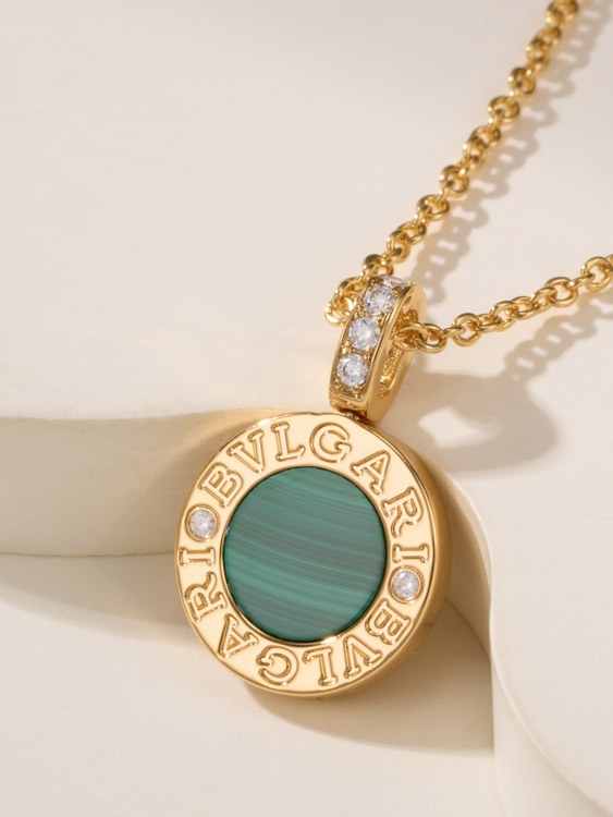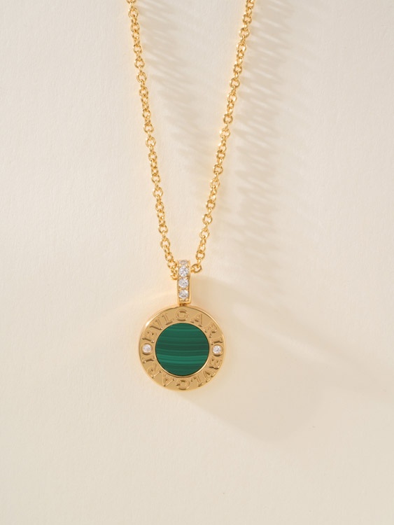 Bulgari doppelseitige grüne Brief Gravur Vintage Diamant Münze Halskette-4000