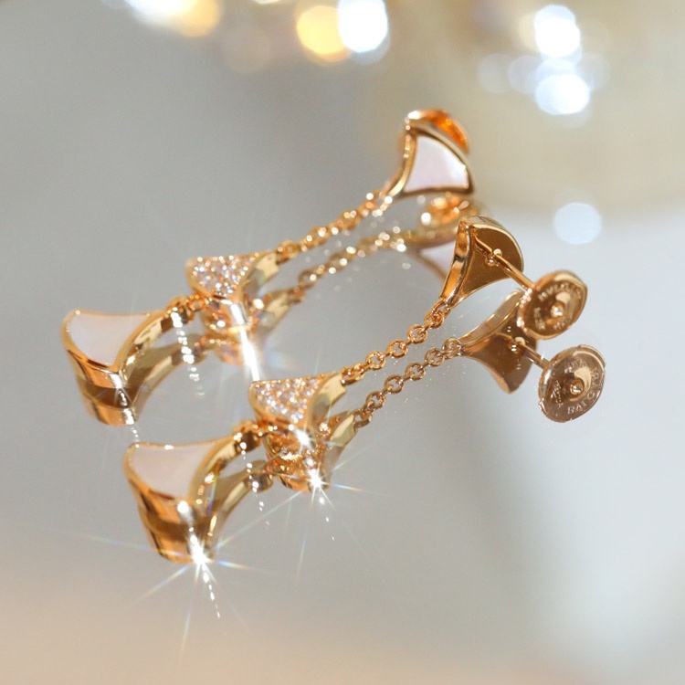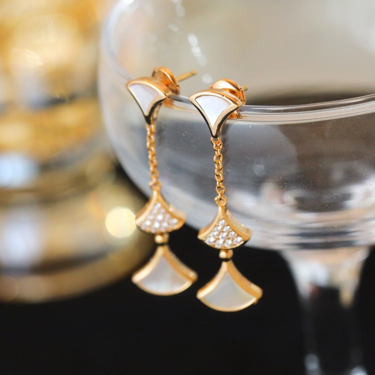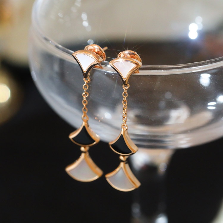 Bulgari Fan-geformte weiße Perlmutt Diamant Ohrringe schwarze Achat lange Ohrringe-3861