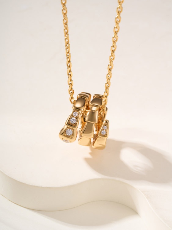 Bulgari Schlange Knochen Schwanz Diamant Halskette-3796