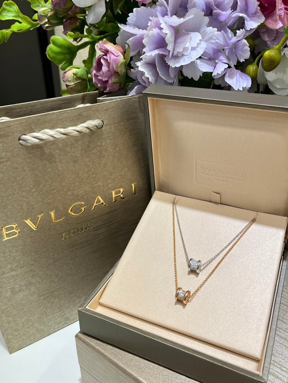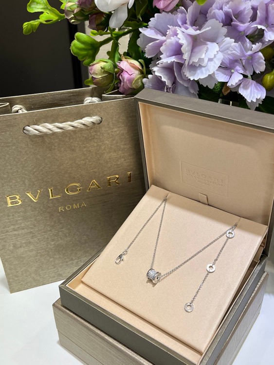 Bulgari weiße volle Diamant Frühling Taille Halskette-3715