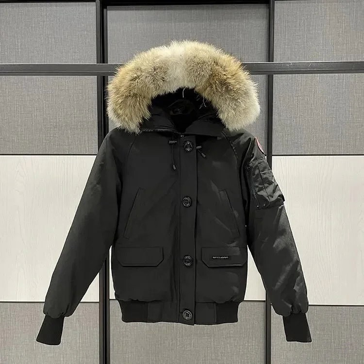 Kanada Gans Expedition Serie Pelz Kragen mittlere Länge Kapuze Parka Daunenjacke-4298