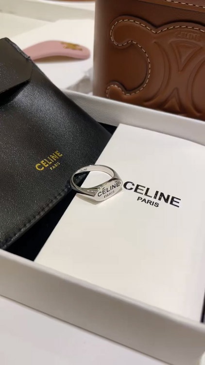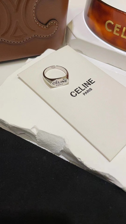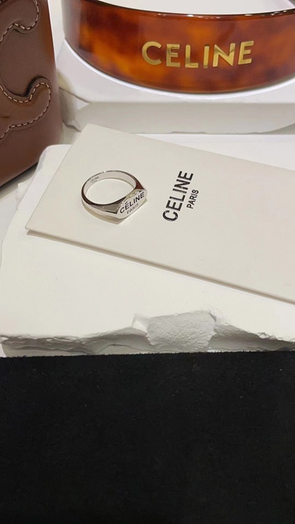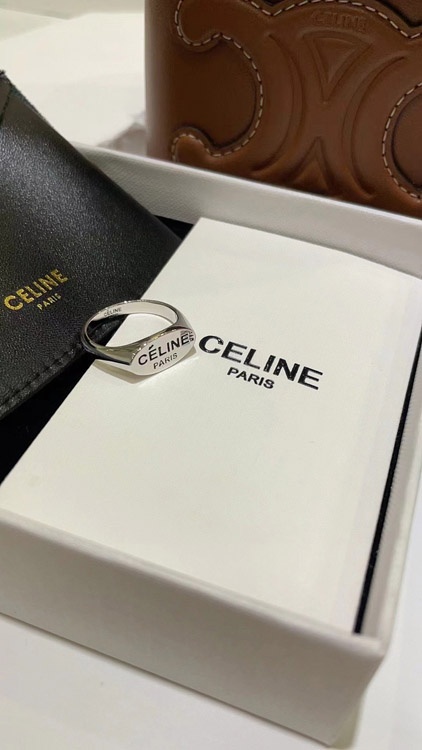 Celine schwarzer Buchstaben Druck Silber Ring-3737