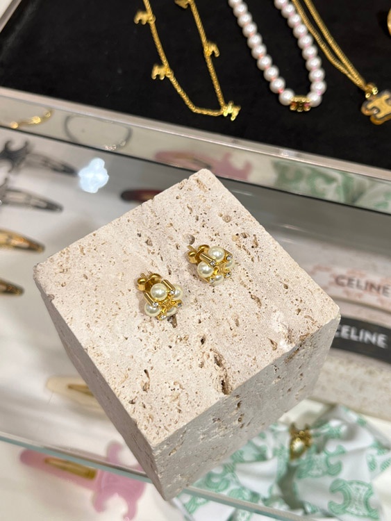 Celine Perle Gold Triumphbogen Ohrringe-3897