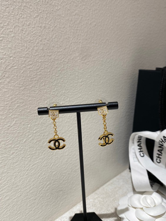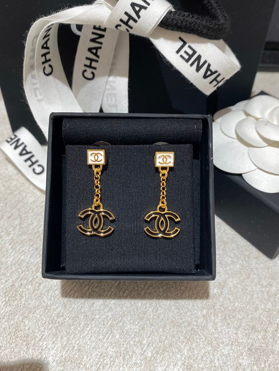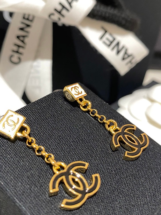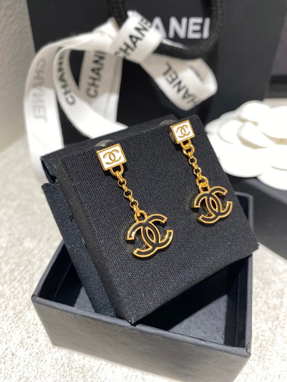 Chanel schwarz und weiß Emaille Quadrat Doppel C Ohrringe-3952