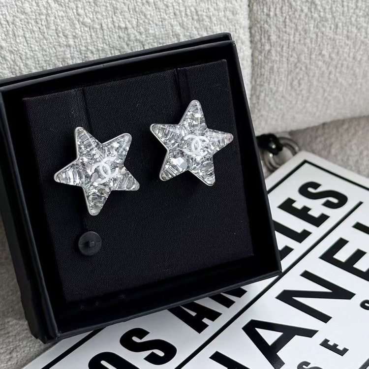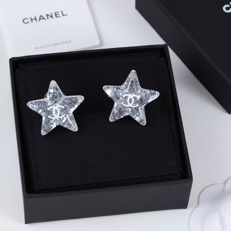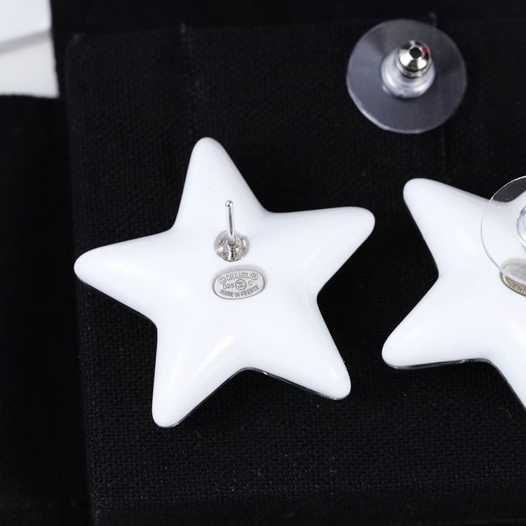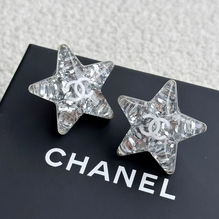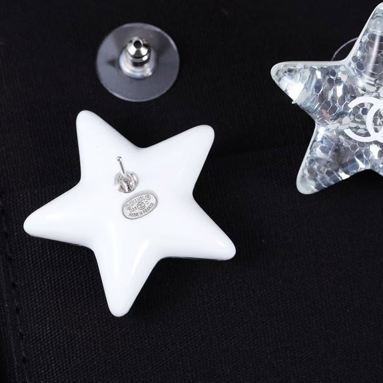 Chanel Ohrringe weiß Doppel c Silber Pailletten Acryl Stern Ohrringe-3744