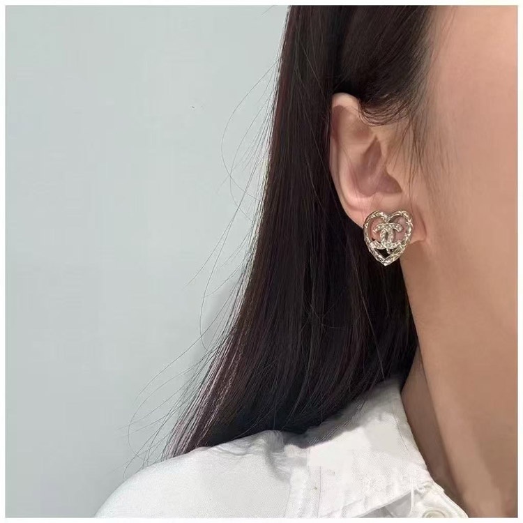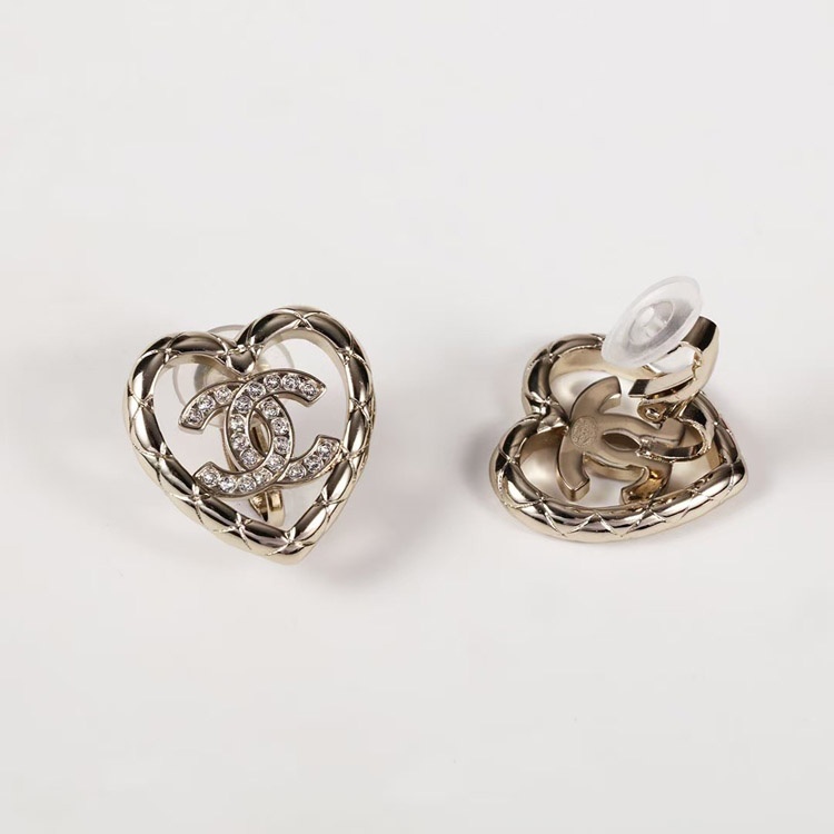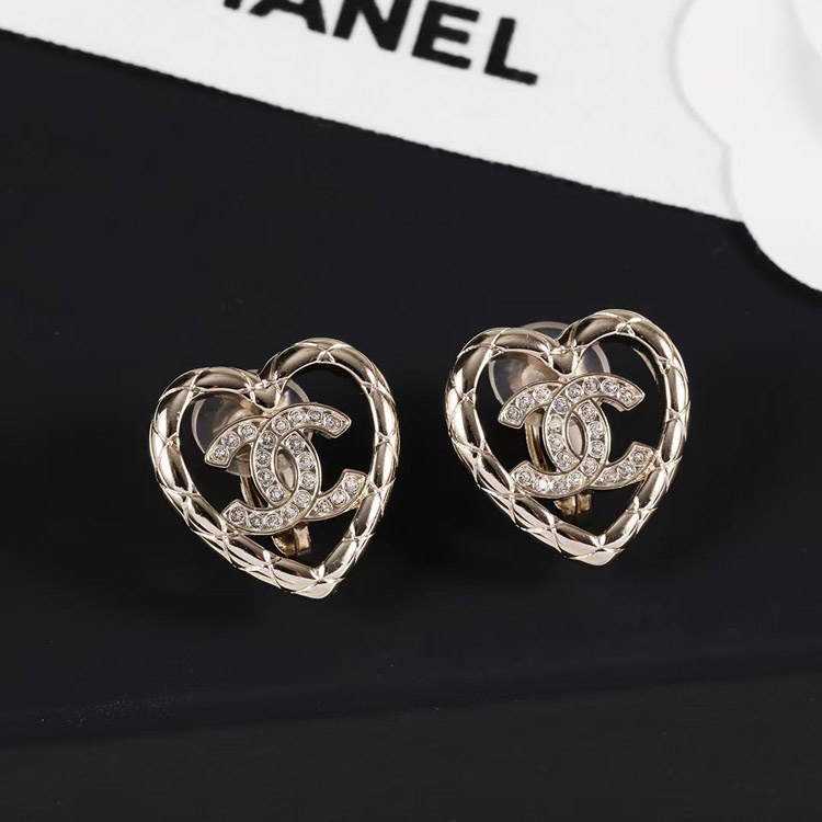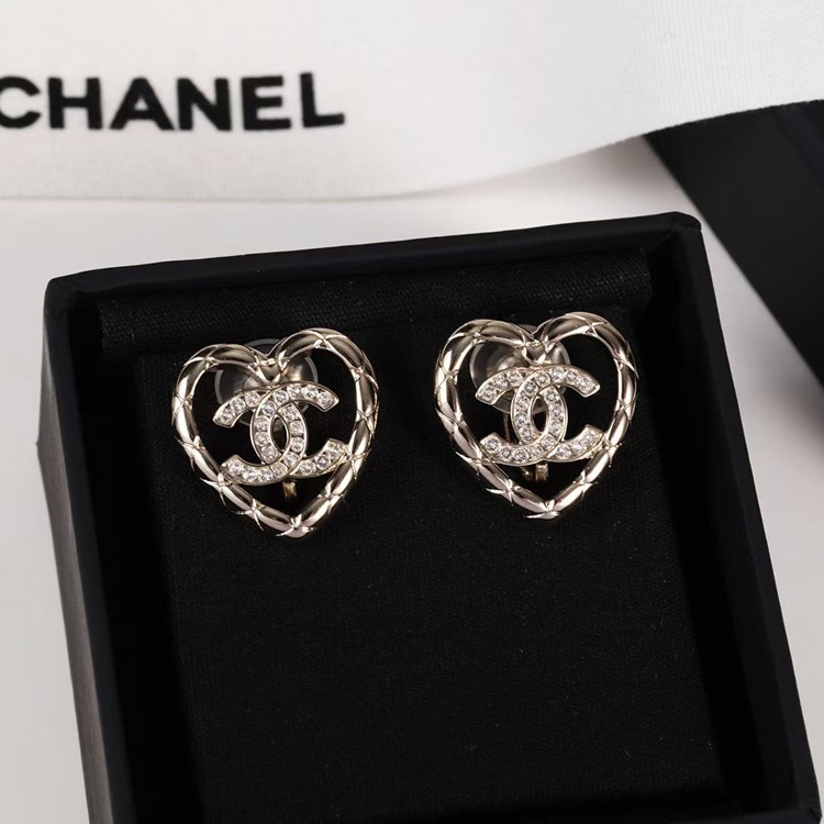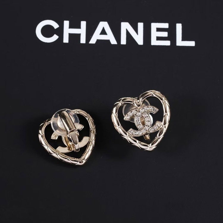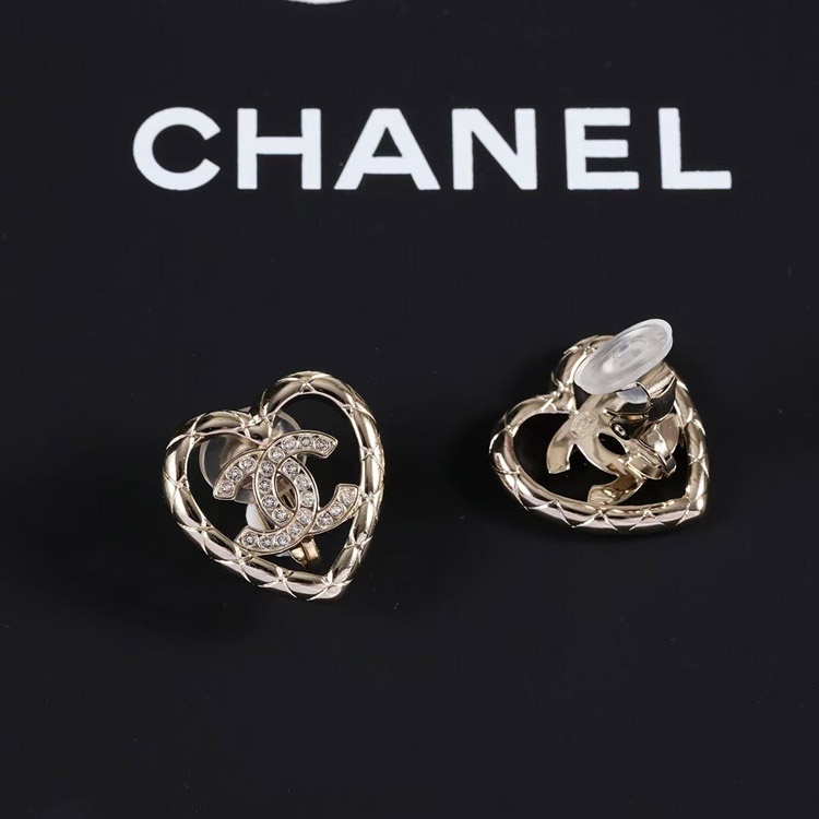 Chanel Gold Diamant Herz hohlen Doppel c Strass Ohr Clip-3754