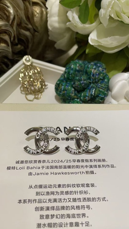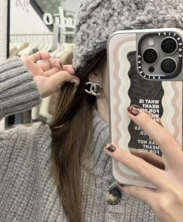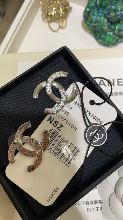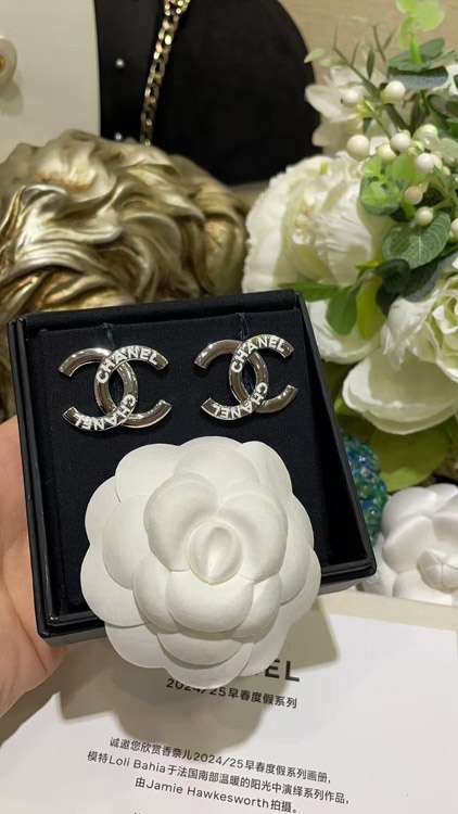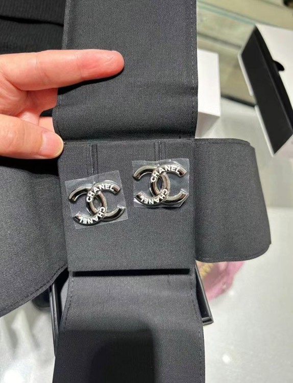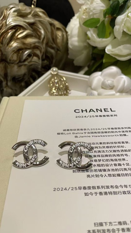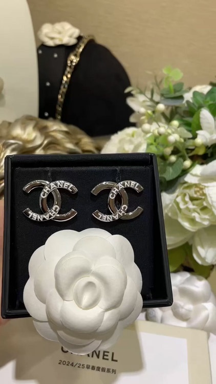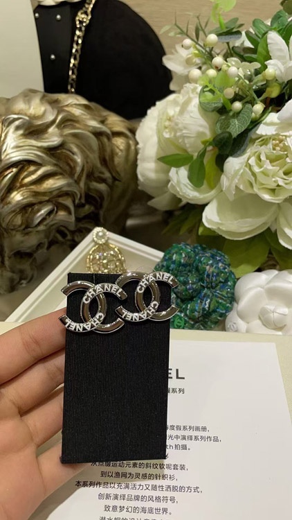 Chanel weiße Emaille Doppel C Silber Ohrringe-3743