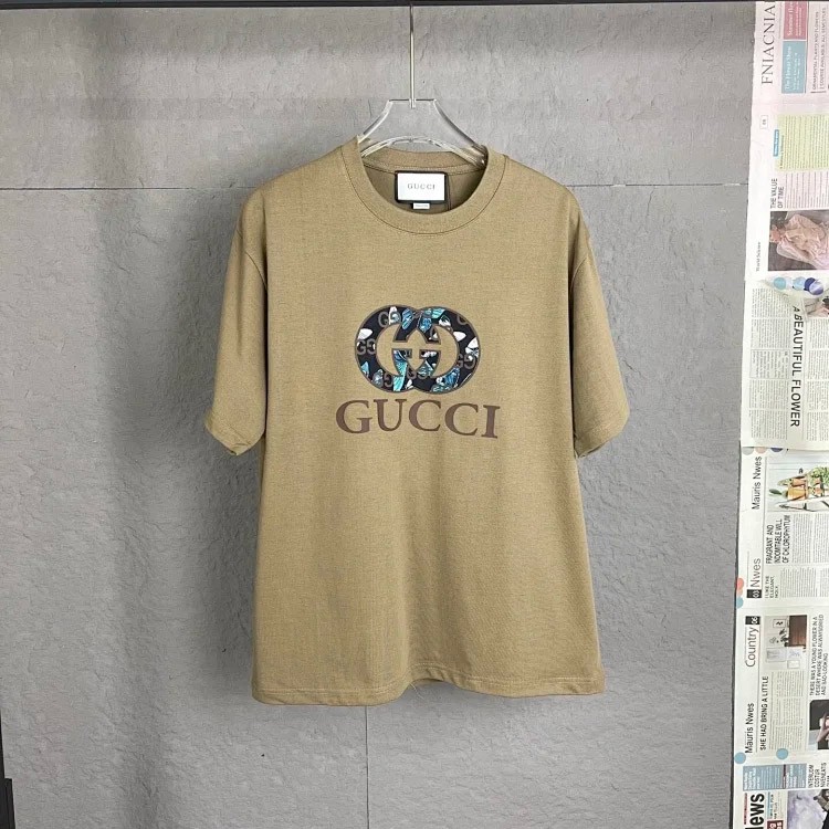 CUCUI neues Buchstaben gedruckt Baumwolle Kurzarmel Rundhals T-Shirt (2 Stile)-2756