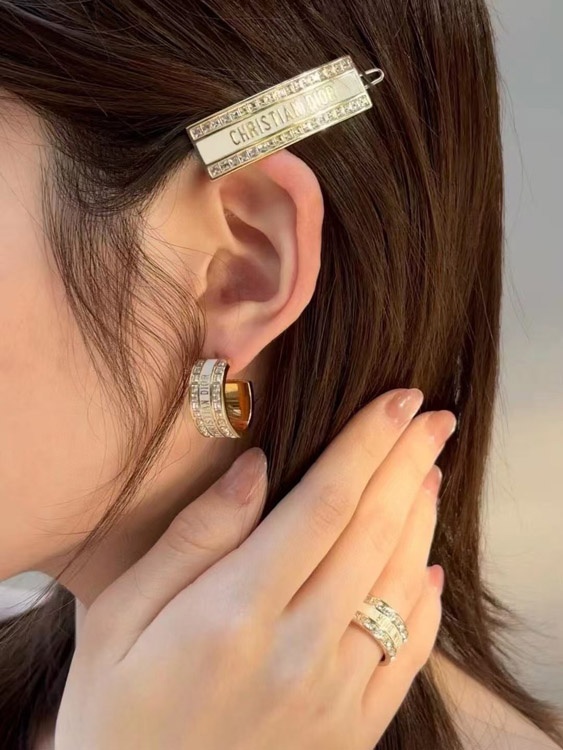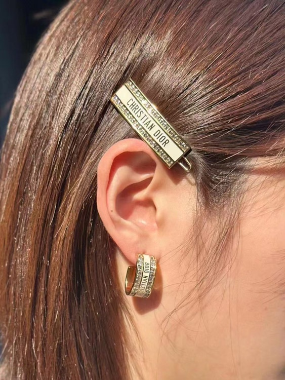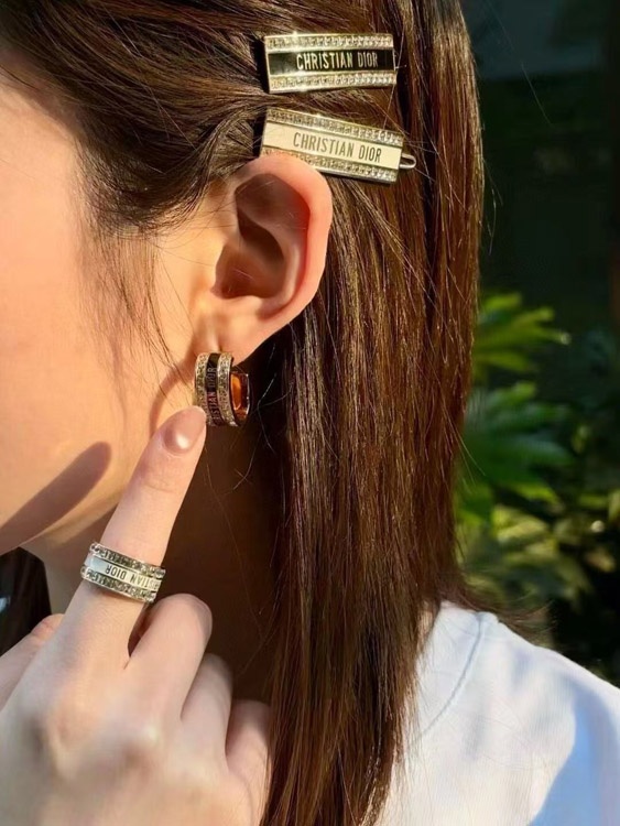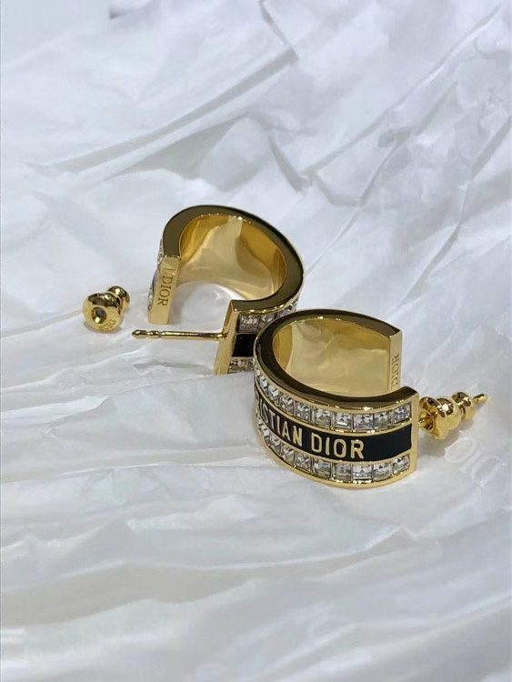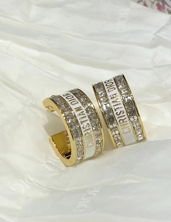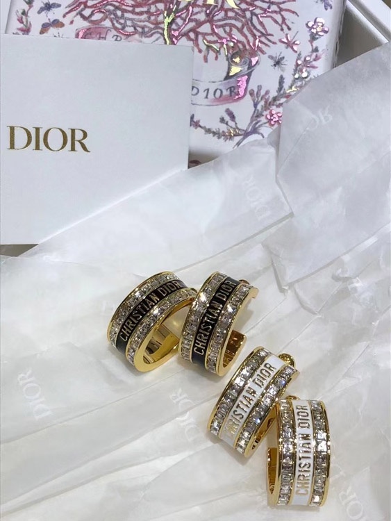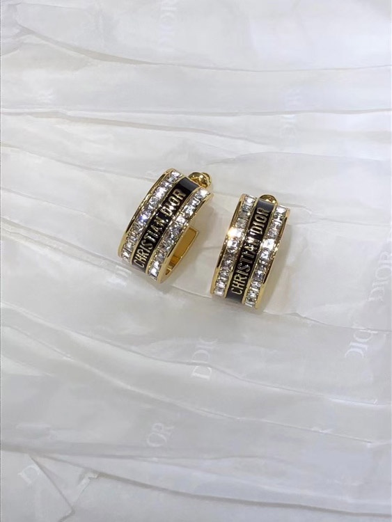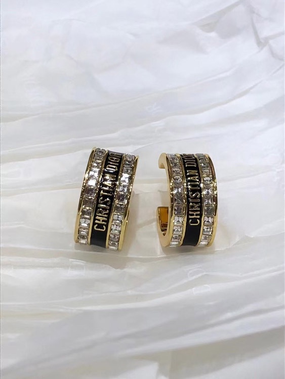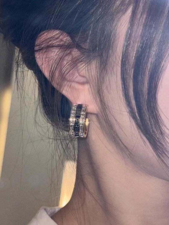 Dior schwarz und weiß Emaille Doppelreihe Diamant Ohrringe-3606