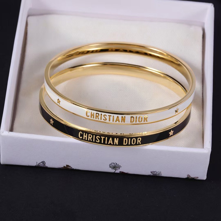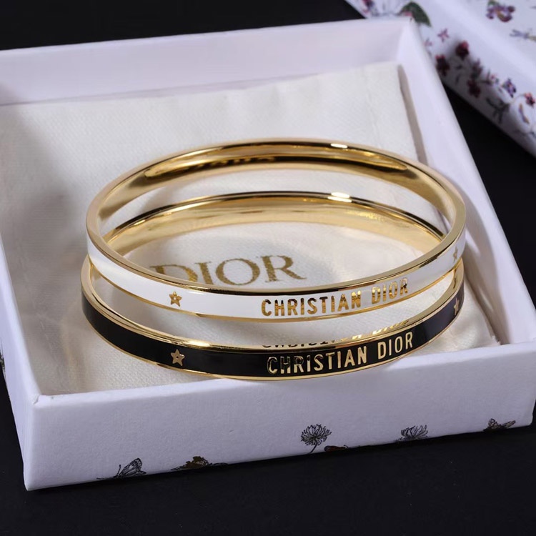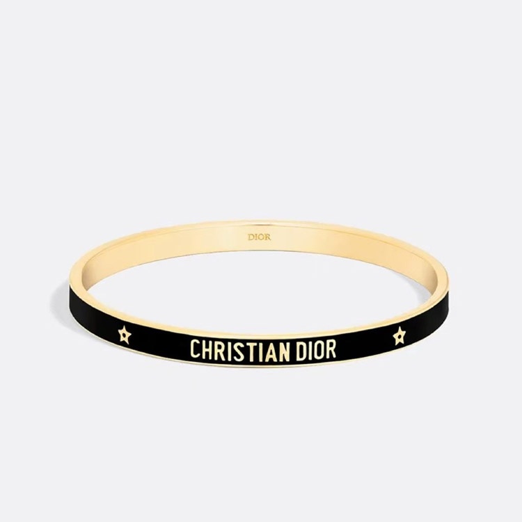 Dior Armband Gold Finish Metall schwarzer Lack dünne Armband-3709
