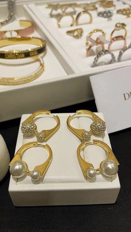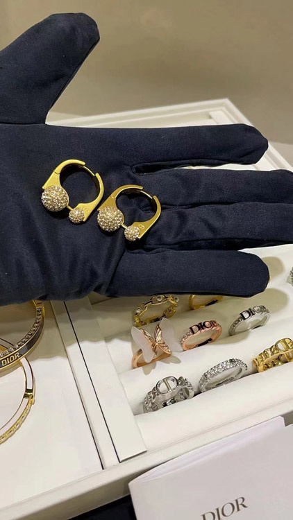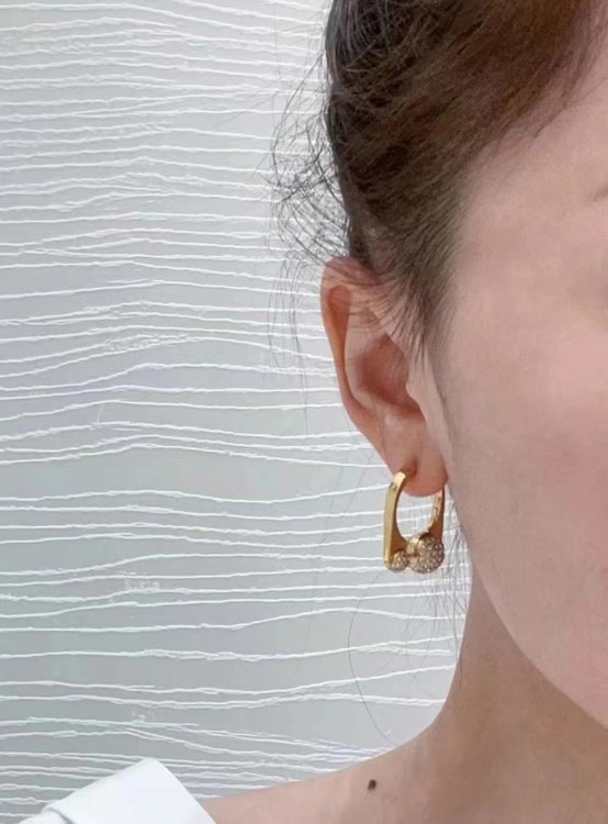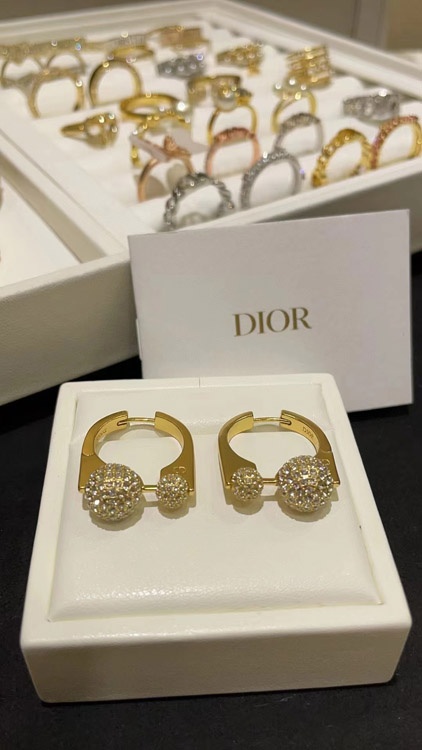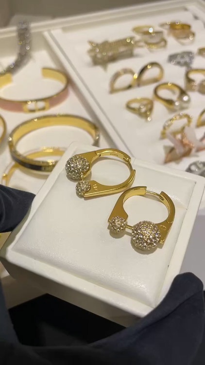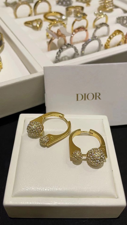 Dior Französisch voller Diamant kleine goldene Kugel goldene Ohrringe-3711