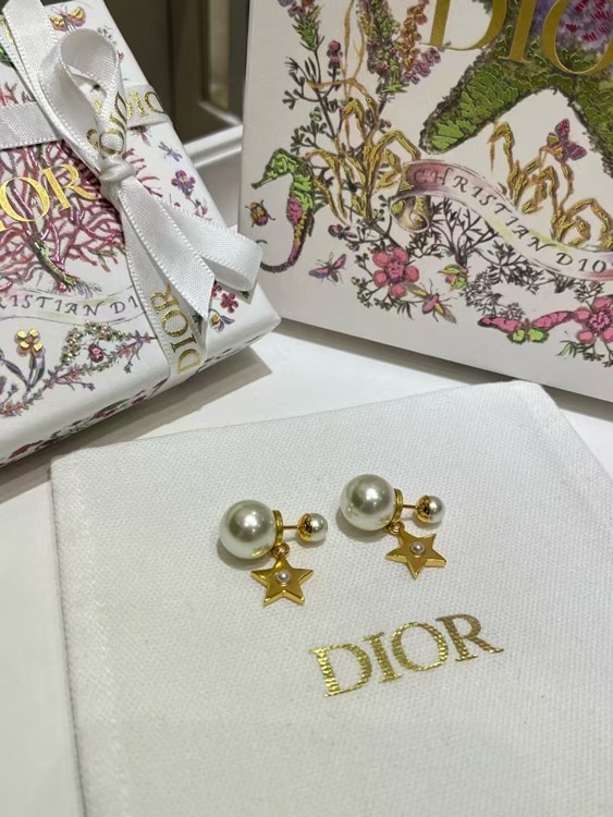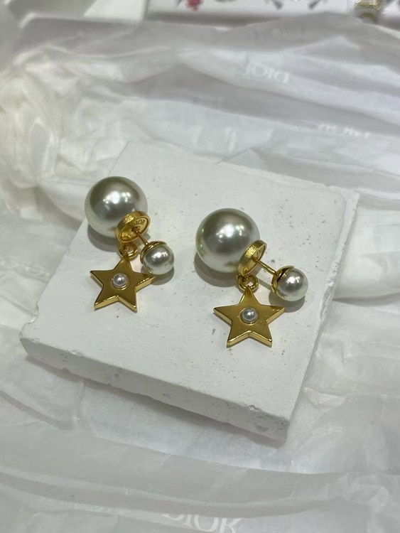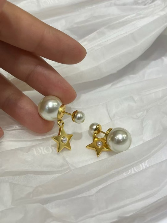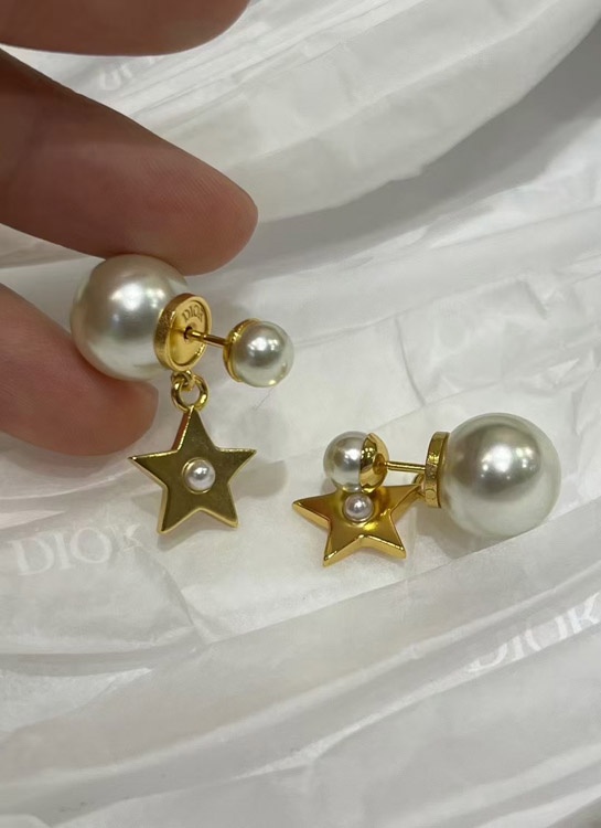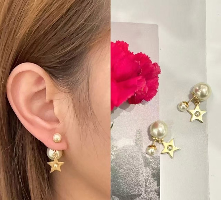Dior Gold Stern Perle Doppel Kugel Ohrringe-3707