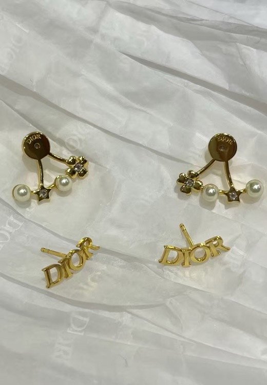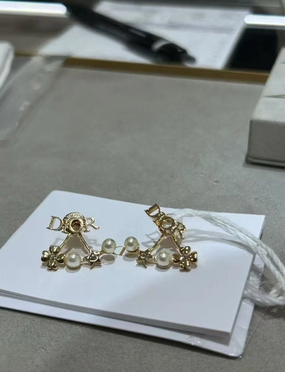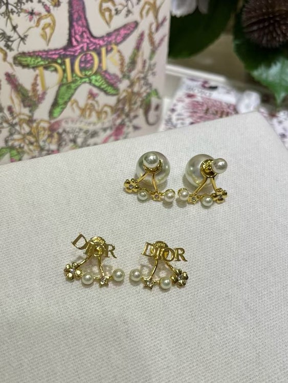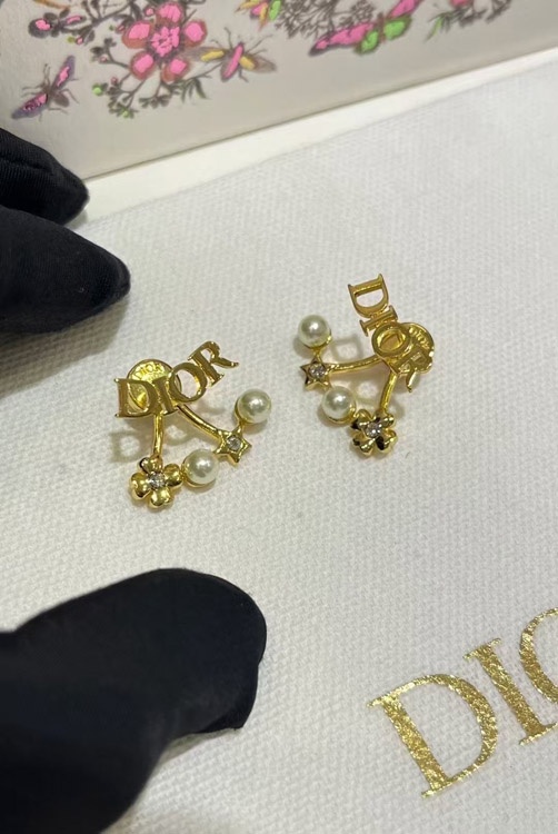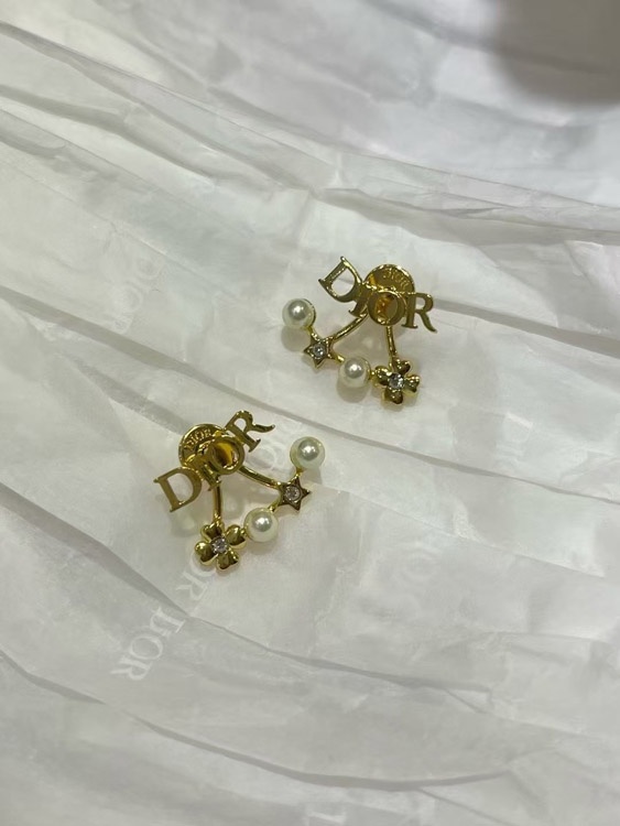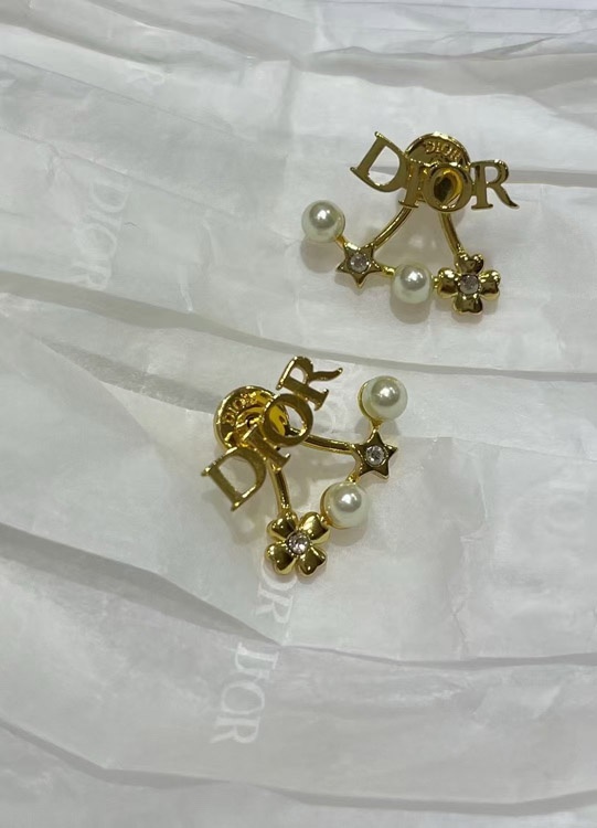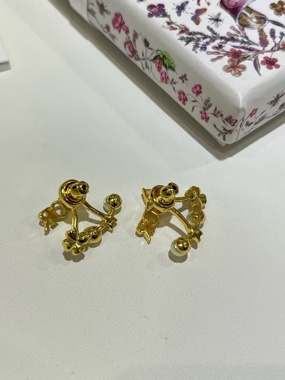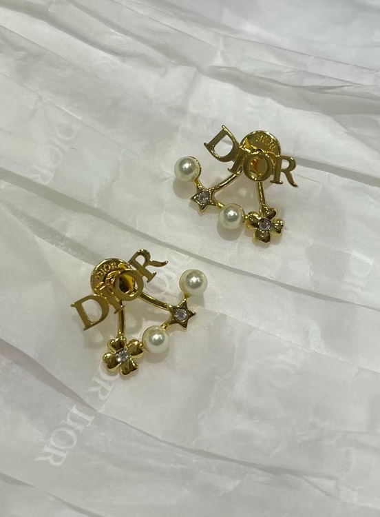 Dior Gold Stern Perle Doppel Kugel Ohrringe-4017
