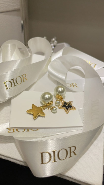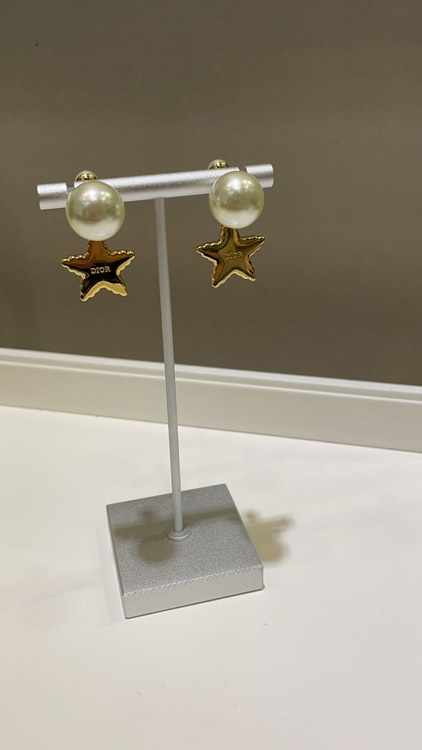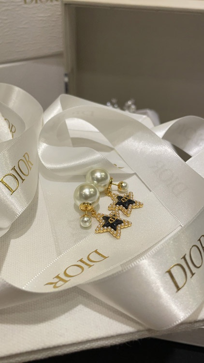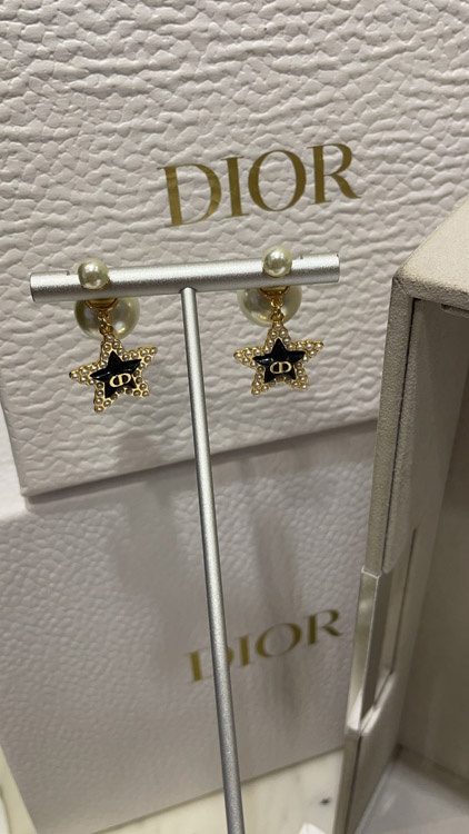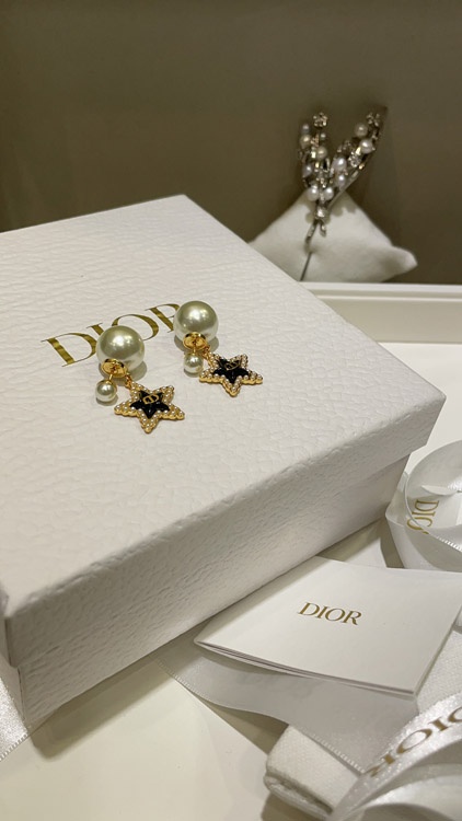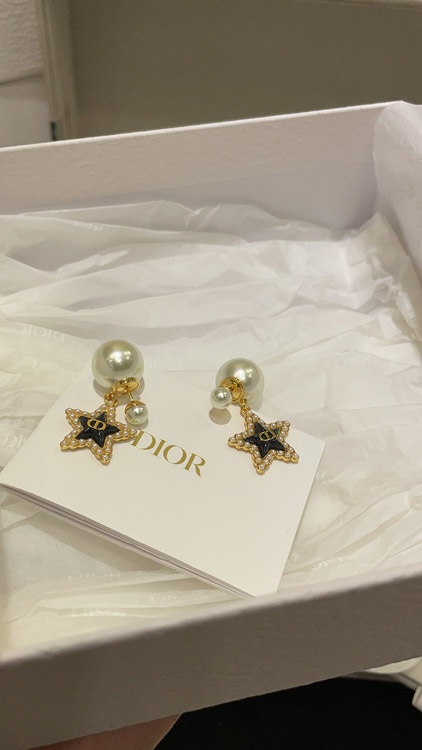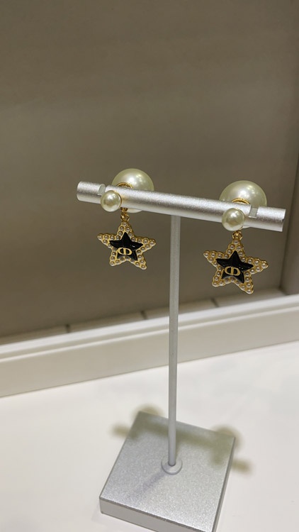 Dior marineblau Stern Perle Doppel Kugel Ohrringe-3891