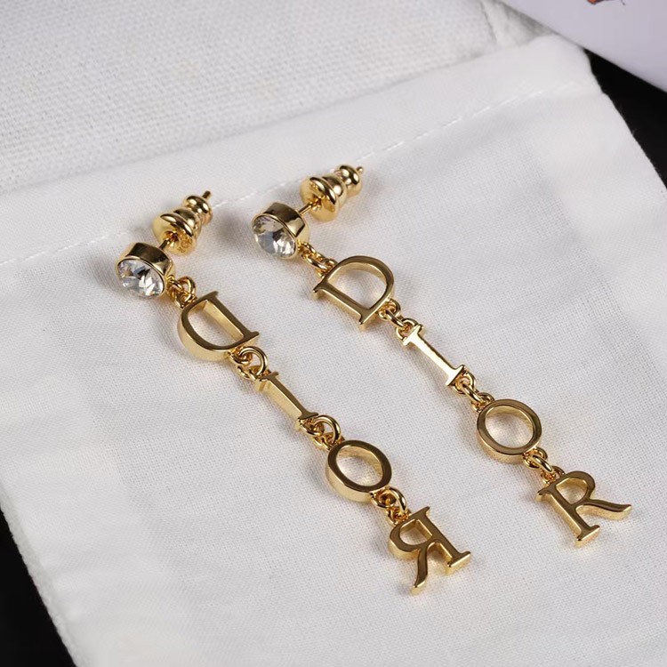 Dior einzelne Diamant hängende Logo Ohrringe-3708