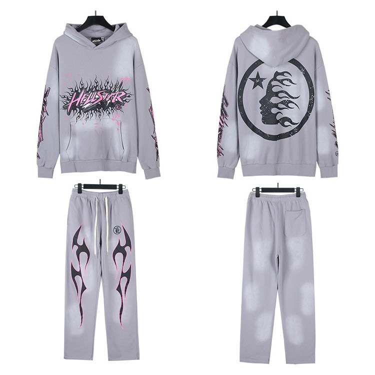 Startseite > Hellstar Letter Flame Hooded Long-Sleeve Sweatshirt and Sweatpants Set-4550