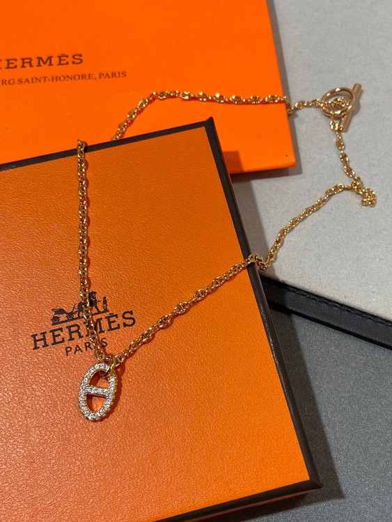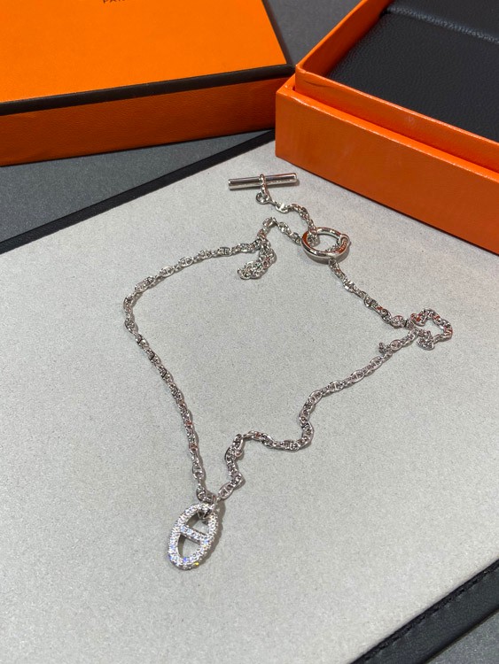 Hermes Schwein Nase Voll Diamant Halskette-3613