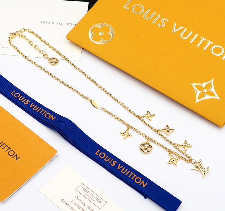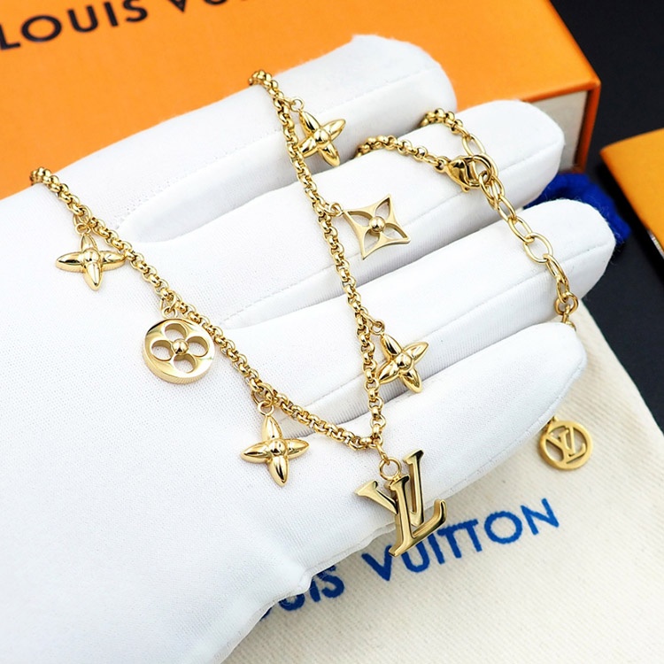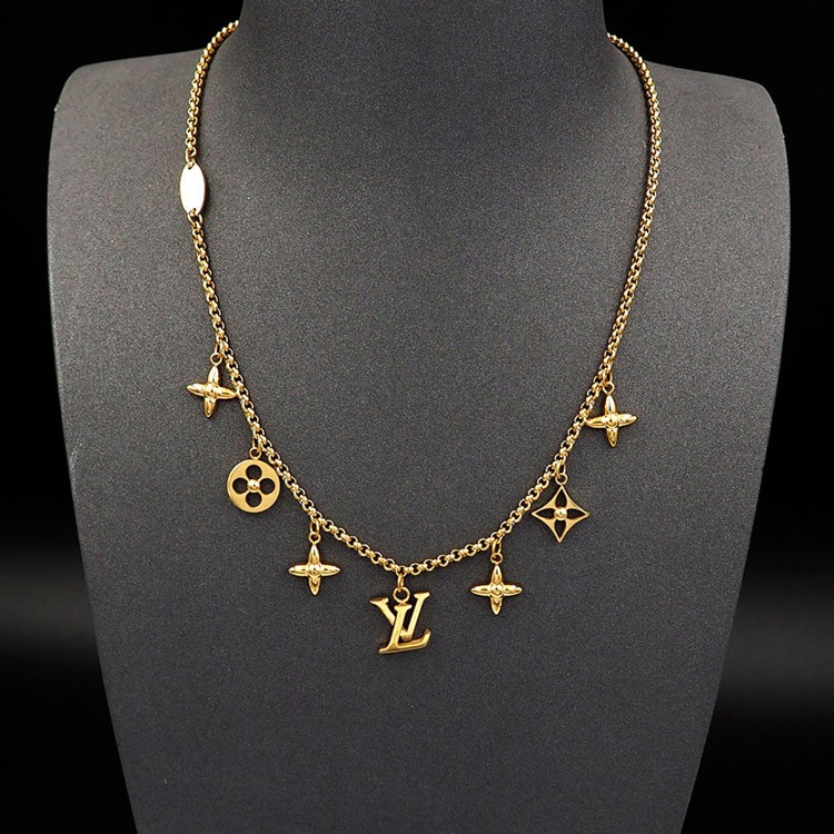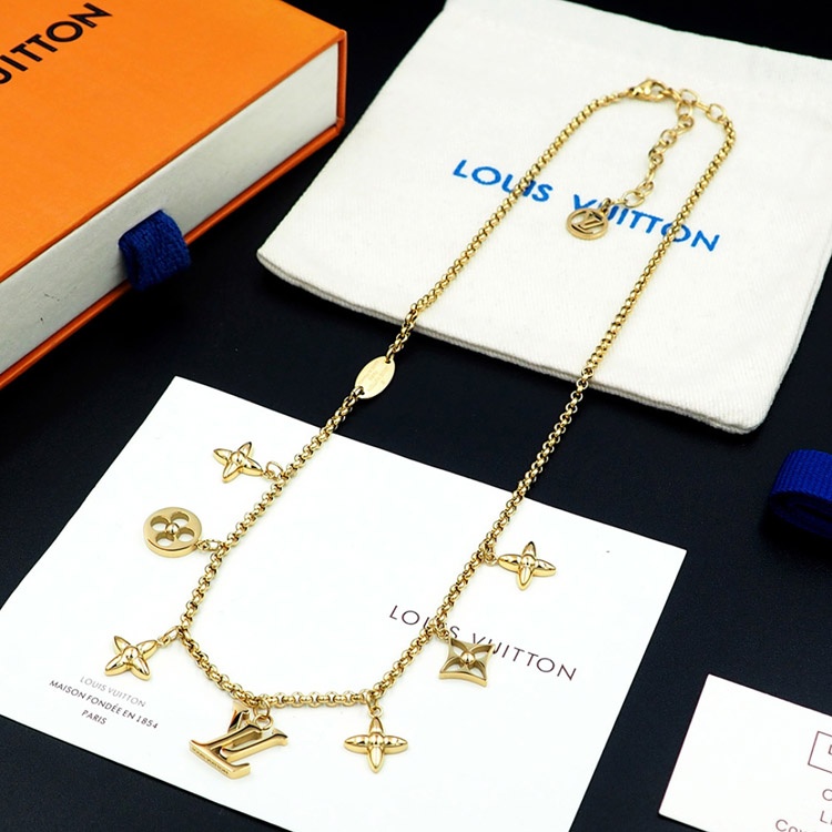 Louis Vuitton LV verstellbare Buchstaben und Blumen Gold Halskette-4073
