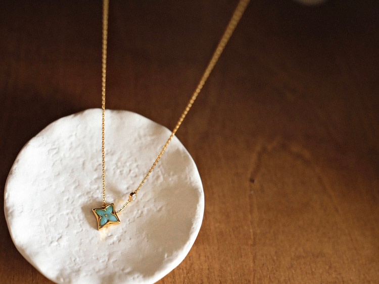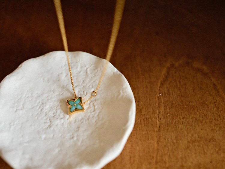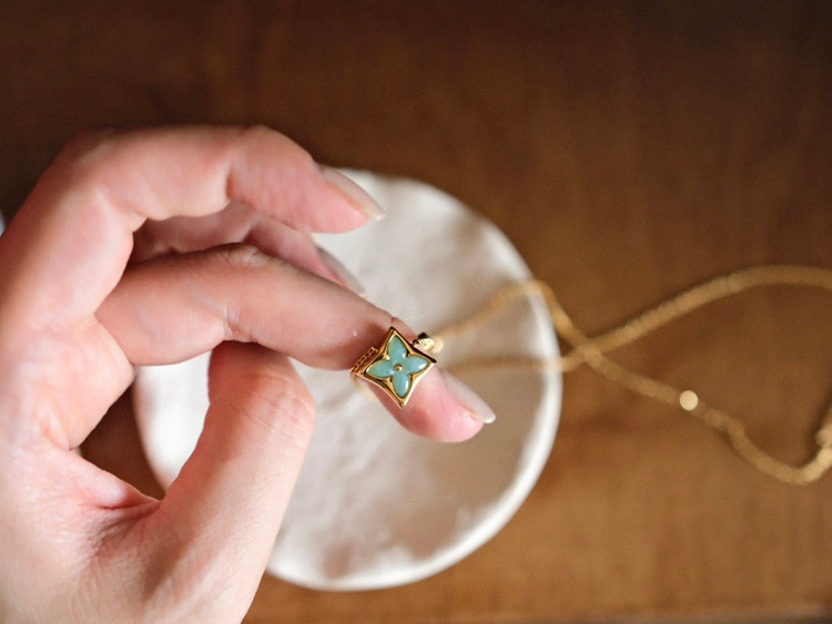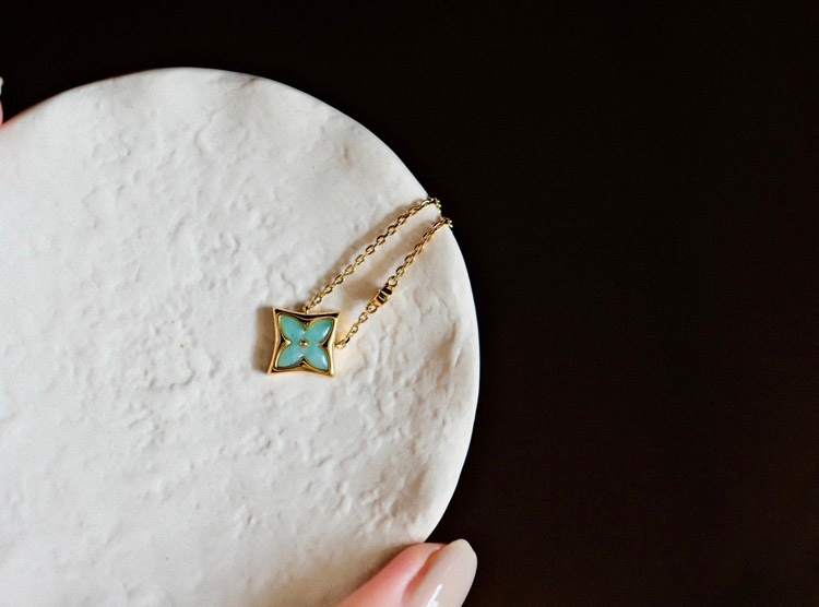 Louis Vuitton LV Amazonite Single Blume Halskette-3614