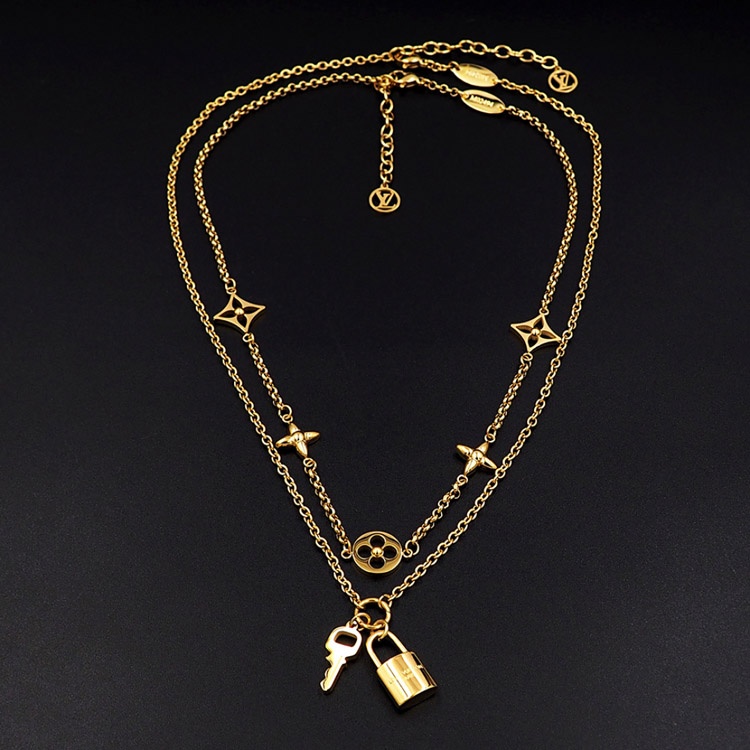 Louis Vuitton LV abnehmbare Doppelkette Blumen und Buchstaben Muster Hangschloss Halskette-3808