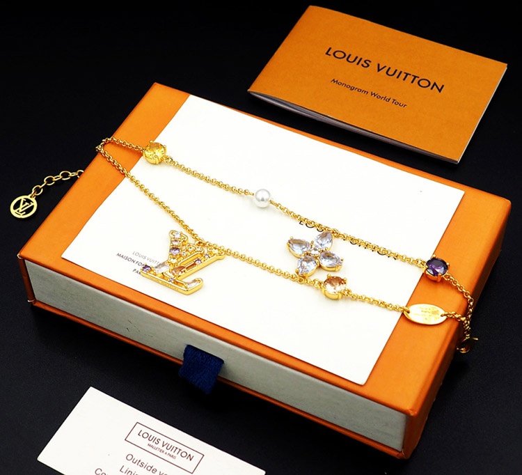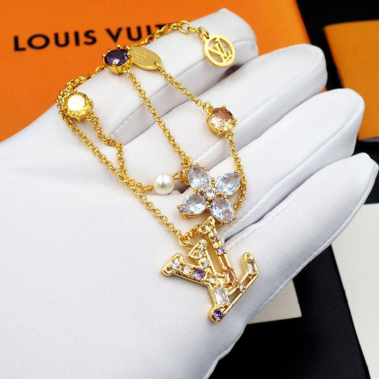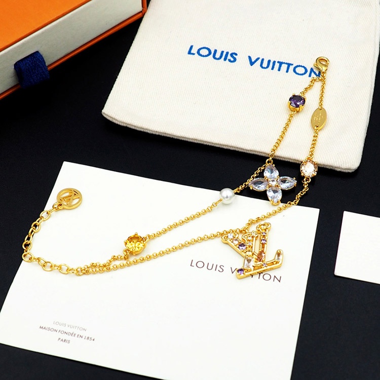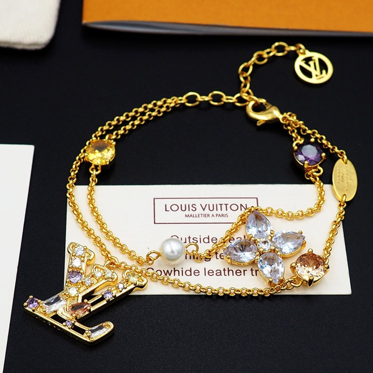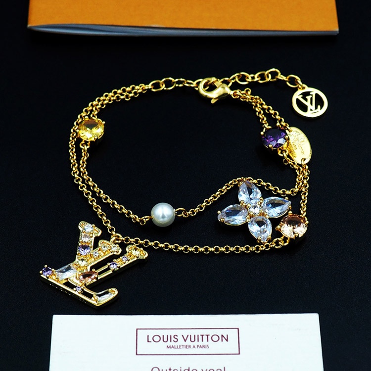 Louis Vuitton LV doppelte Metallkette eingelegte Diamant Armband-3801