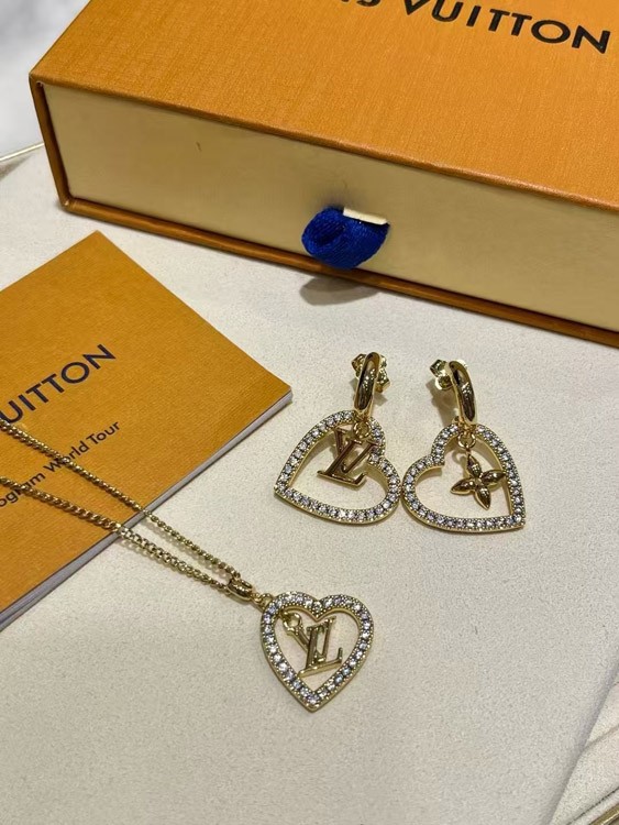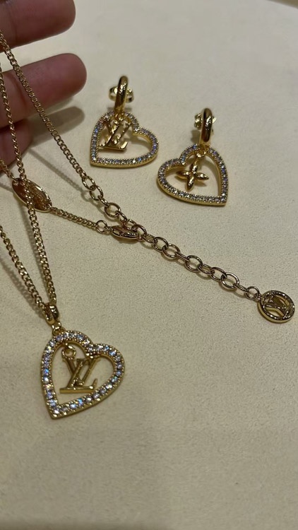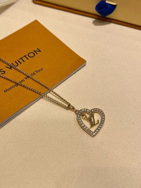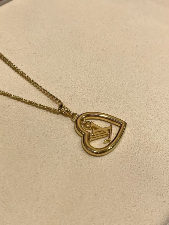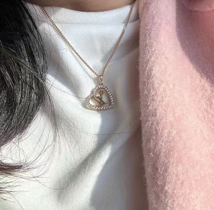 Louis Vuitton LV Gold Buchstaben Hohldiamant Herz Halskette-3725