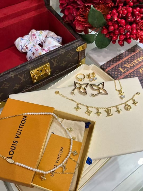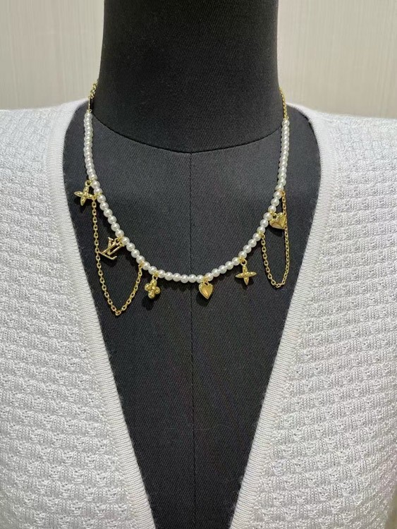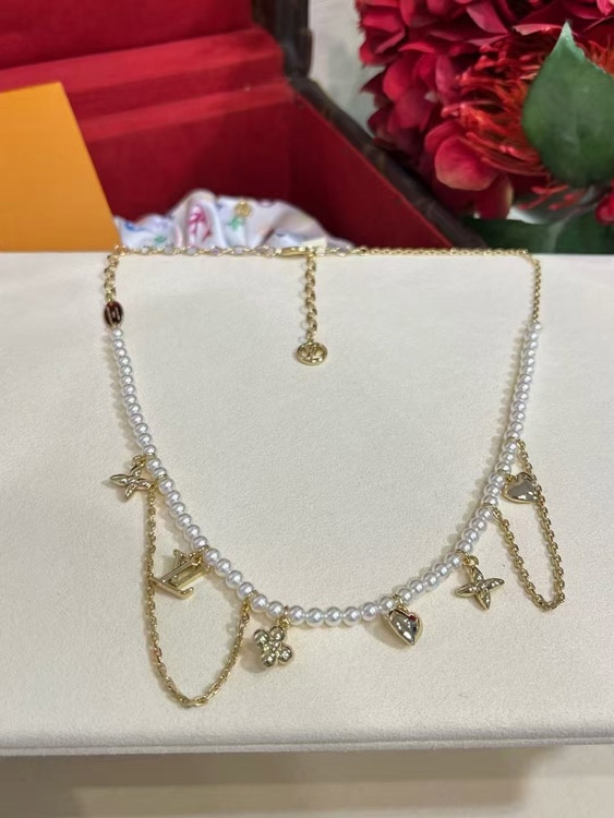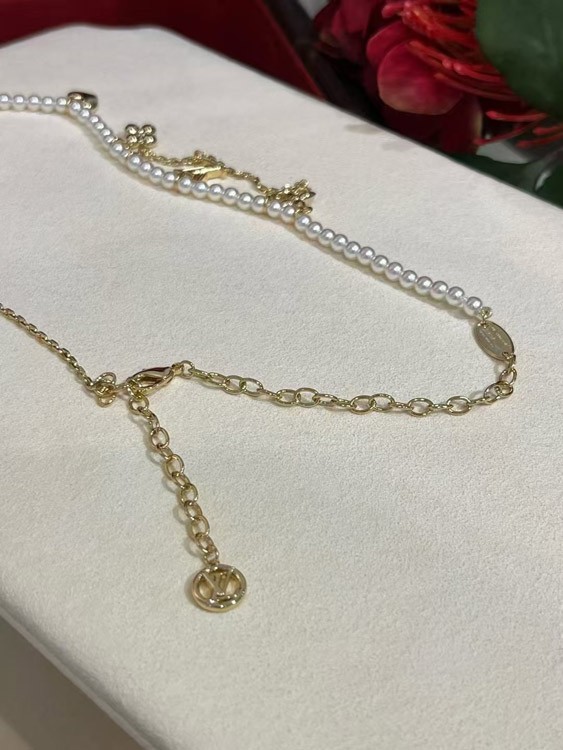 Louis Vuitton LV Gold Buchstaben alte Blume Perle Halskette-3721