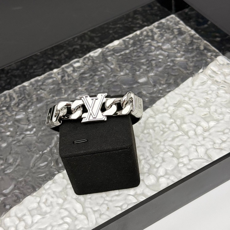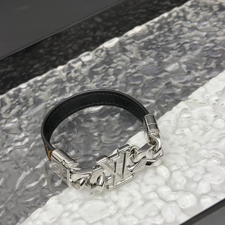 Louis Vuitton LV Leder Metall Kettenring mit gravierten Buchstaben auf beiden Seiten des Armbands-38