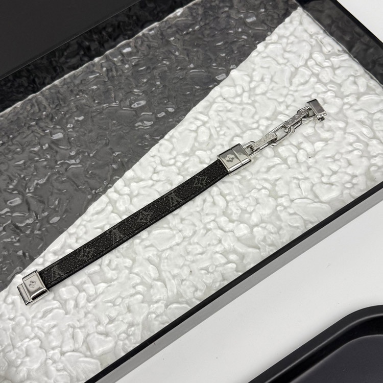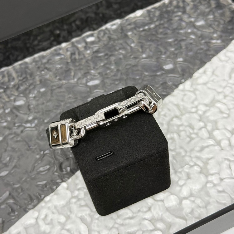 Louis Vuitton LV Leder Metall Kettenring mit gravierten Buchstaben auf beiden Seiten des Armbands-38