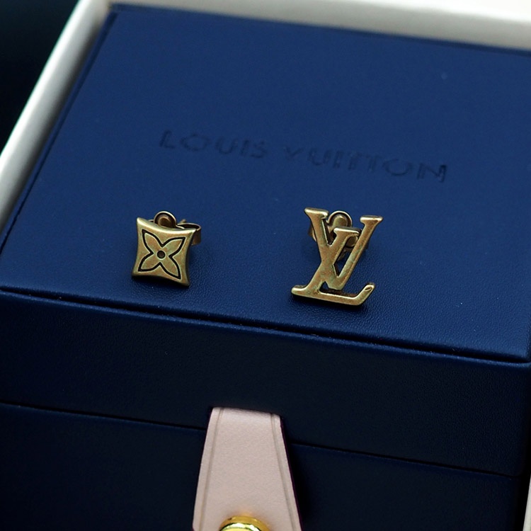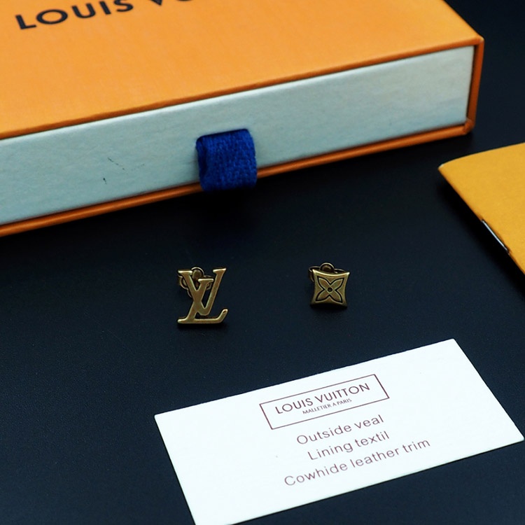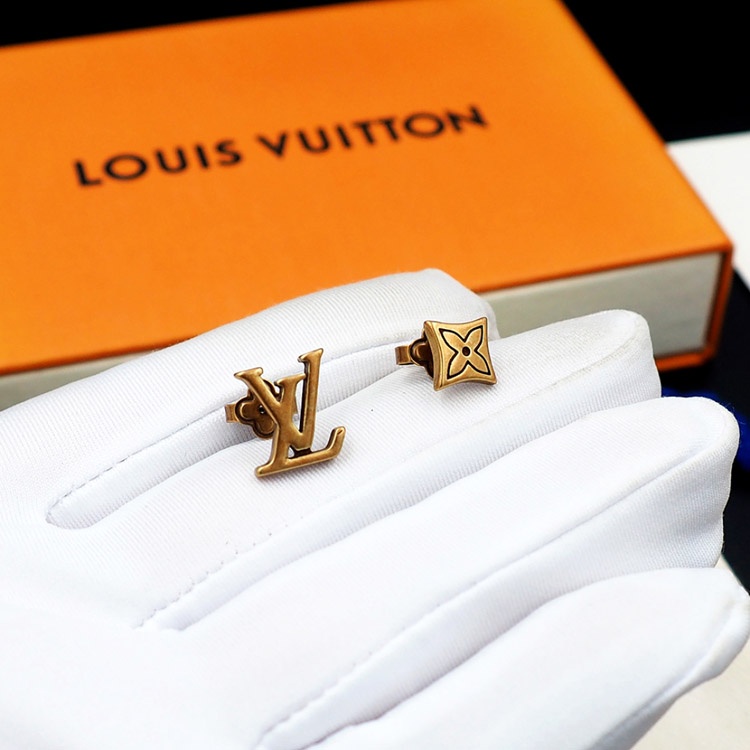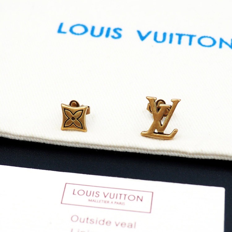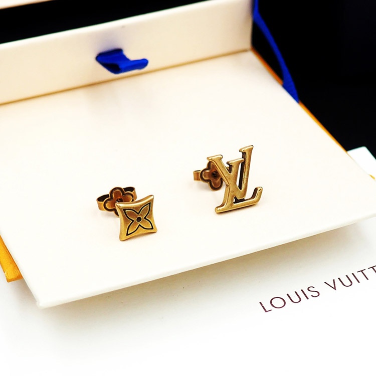Louis Vuitton LV Buchstabe Blumen Messing Distressed Ohrringe-3575