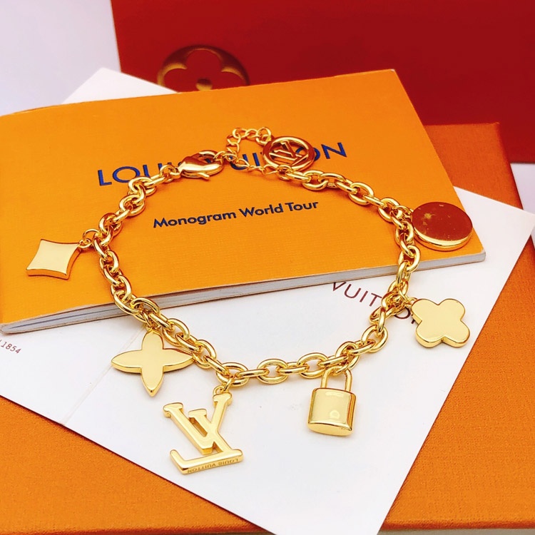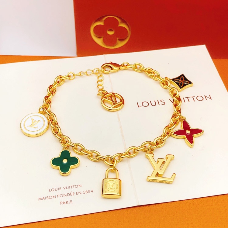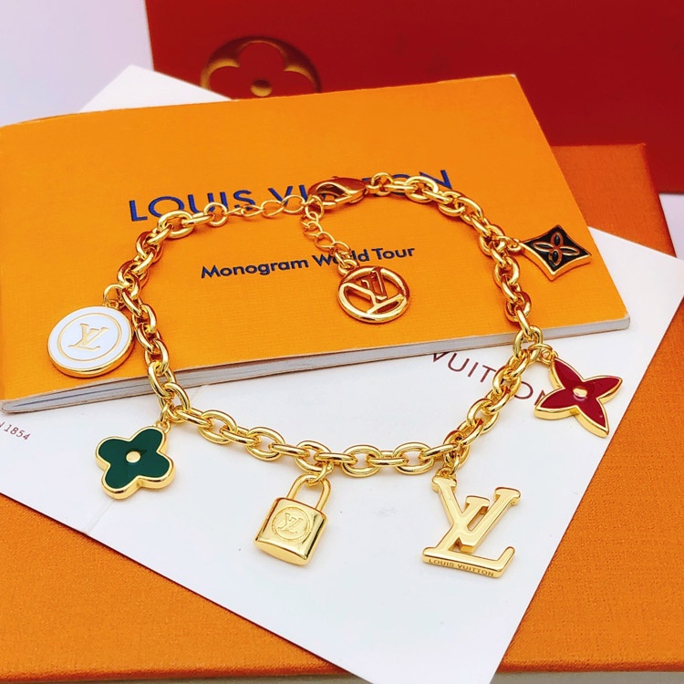 Louis Vuitton LV Buchstabe Blume Schloss Stein Farbe Tropfen Öl Armband-3874