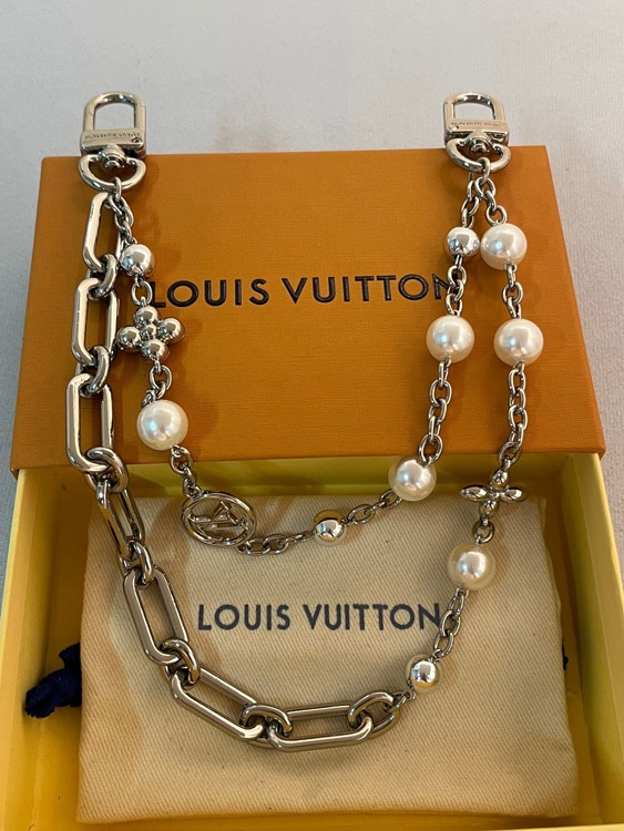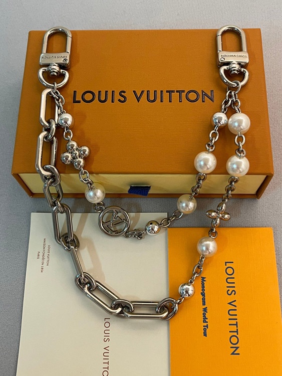 Louis Vuitton LV Buchstabe Blume Perle Doppelkette Tasche Gürtel Kette-3868
