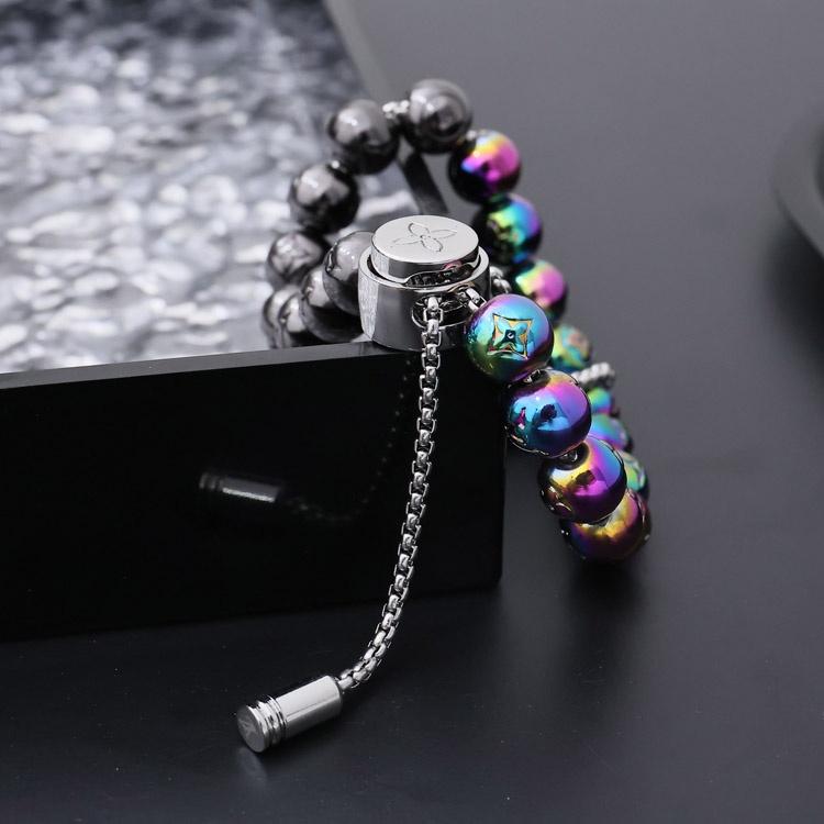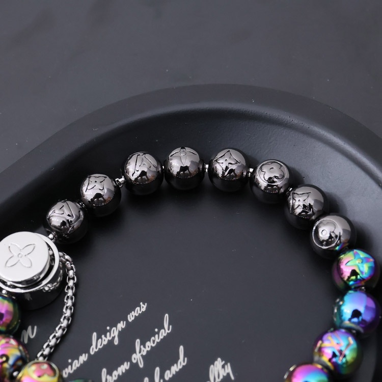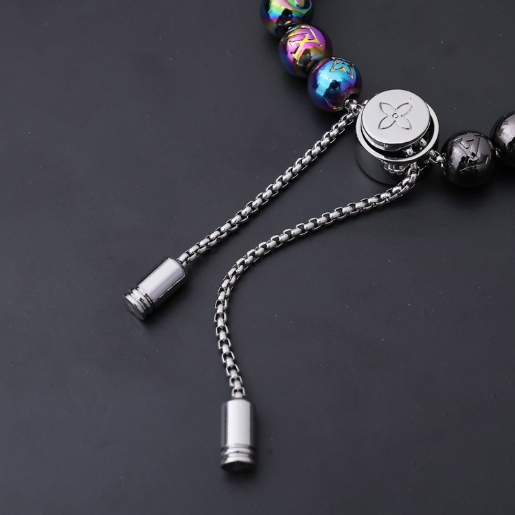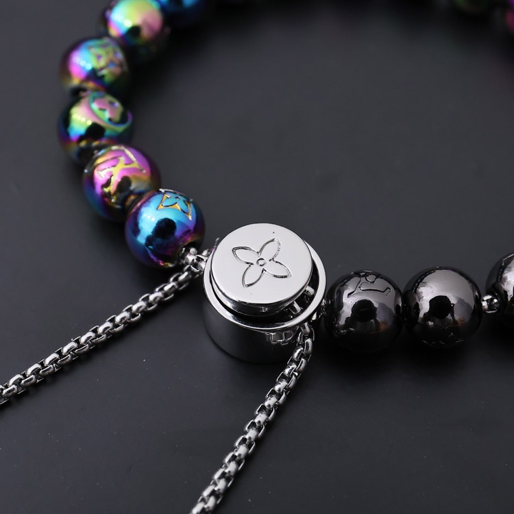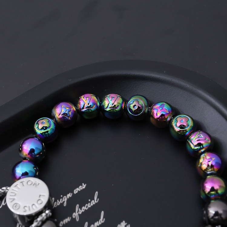 Louis Vuitton LV Metall Perlen graviert Buchstaben und Blumen bunte Perlen Armband-4047