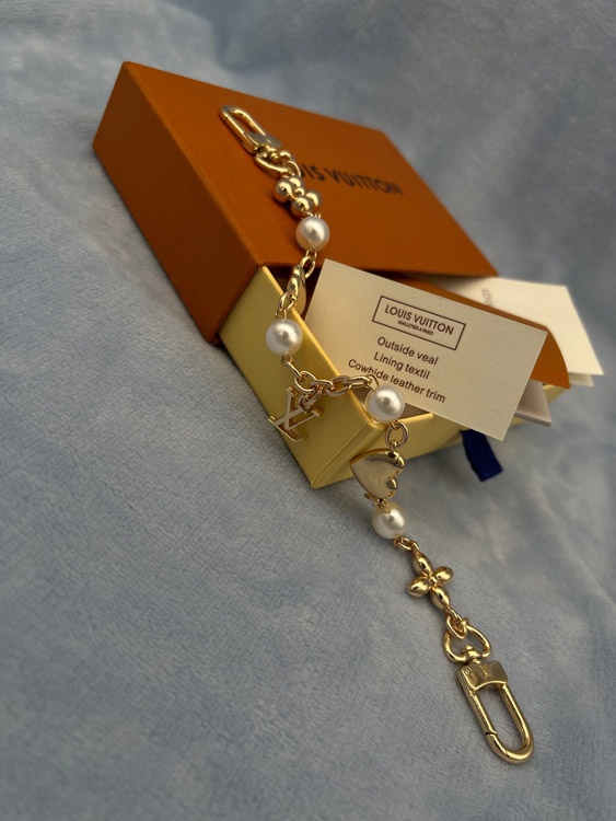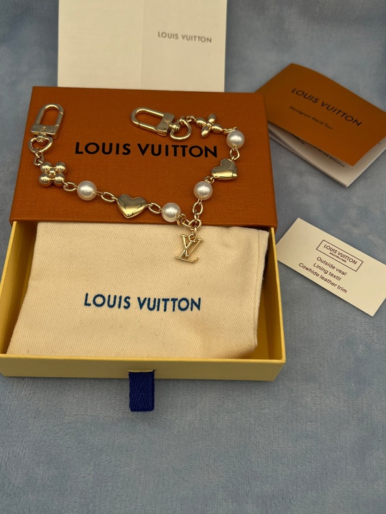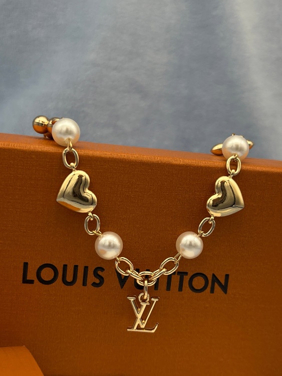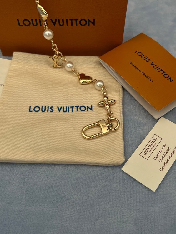 Louis Vuitton LV Metallkette geschmückt mit Buchstaben, Blumen, herzförmige Perle Armband-3886