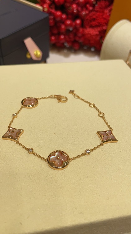 Louis Vuitton LV Rosa Perlmutt Floral Vier-Blatt Kleiere Rose Gold Armband-3728