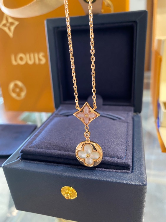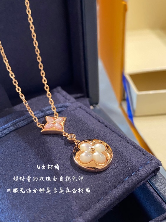 Louis Vuitton LV rose gold zweifarbige schale doppelte blume halskette-3582