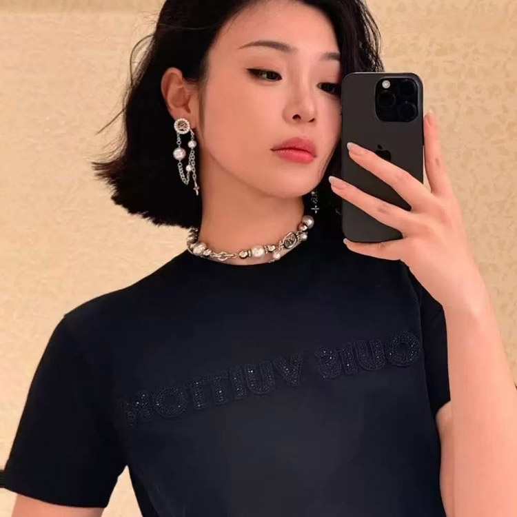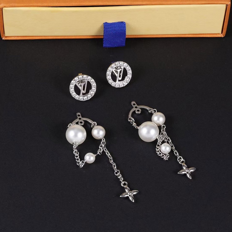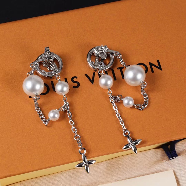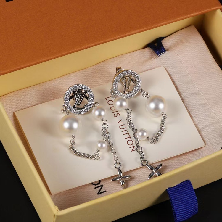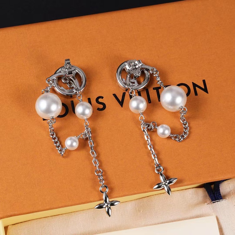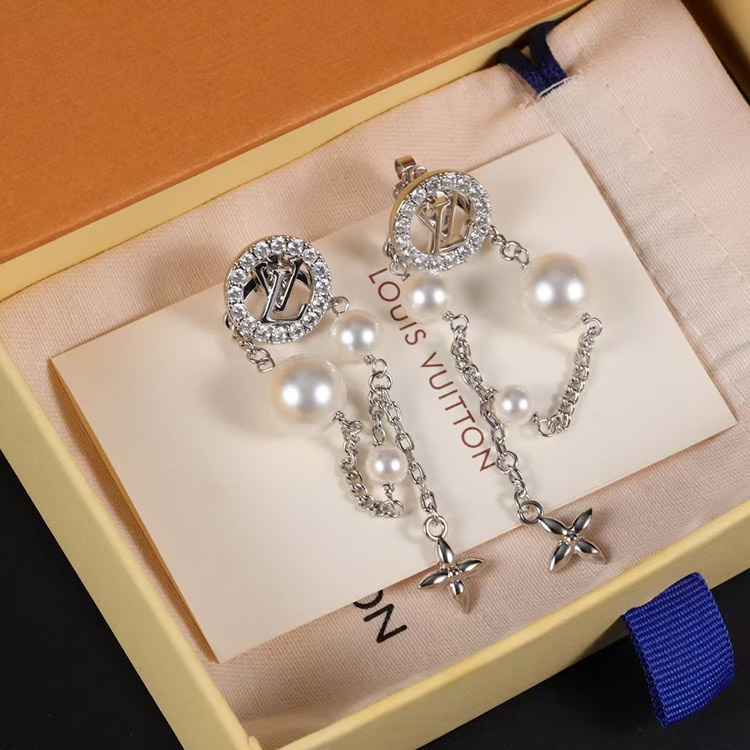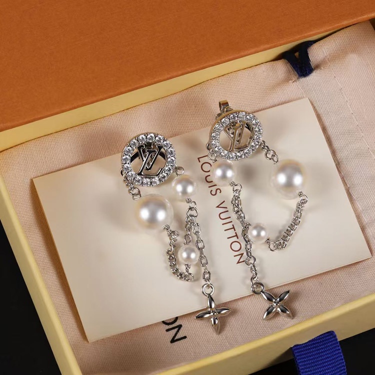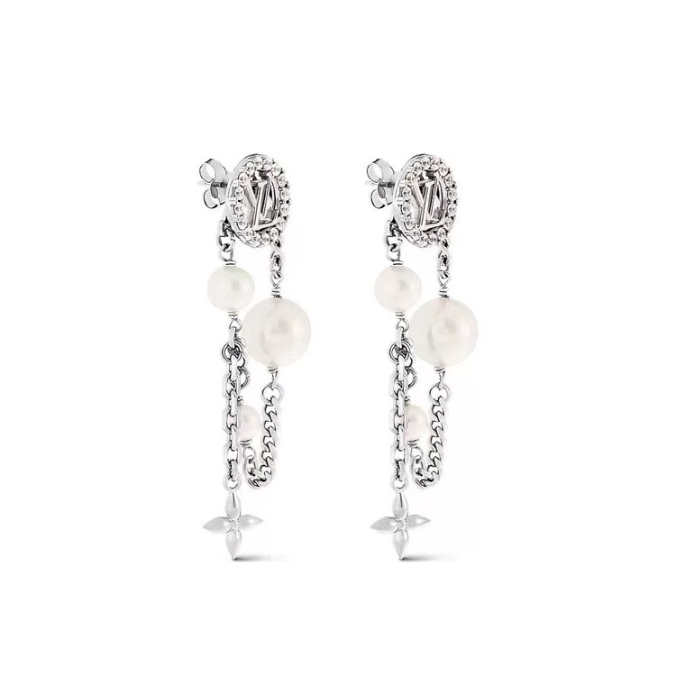 Louis Vuitton LV Silber Brief Diamant Perle Tassel Ohrringe-3865