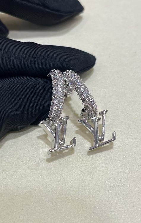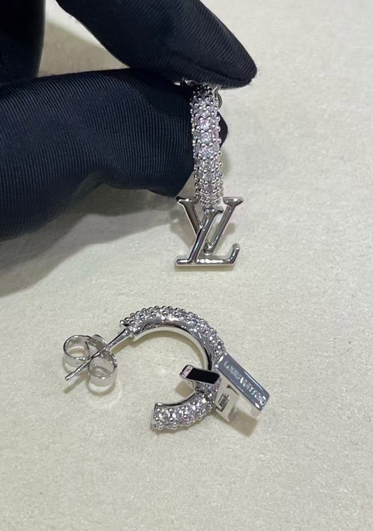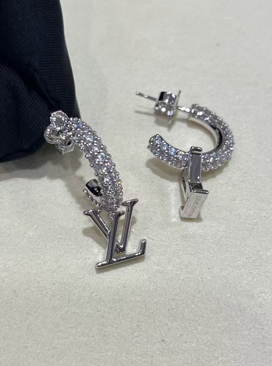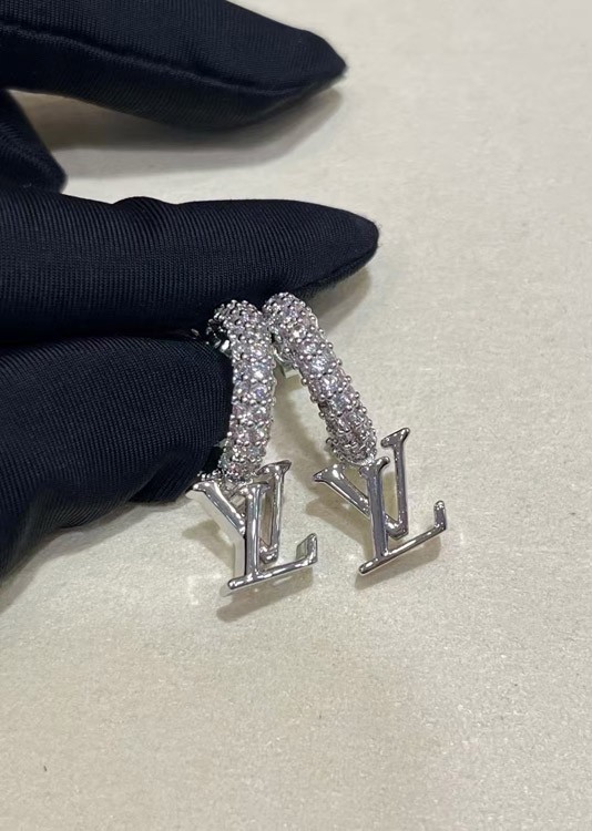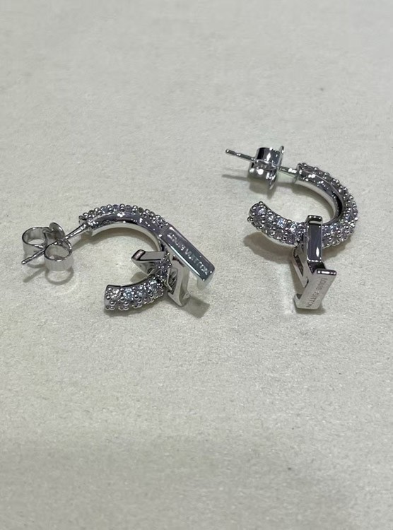 Louis Vuitton LV Silber Brief kleiner Anhänger voller Diamant Ohrringe-3723