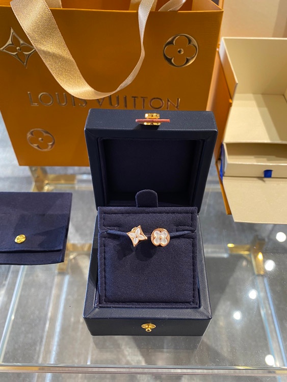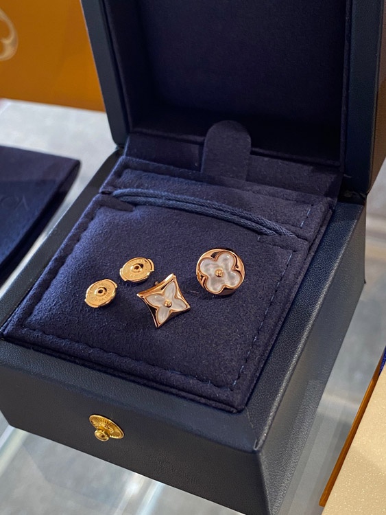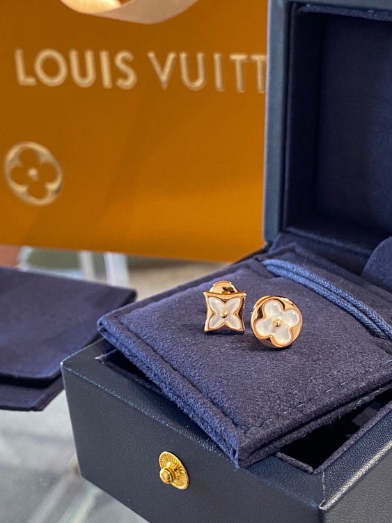 Louis Vuitton LV weiße Perlmutt-Ohrringe, Ohrstöpfe-3760