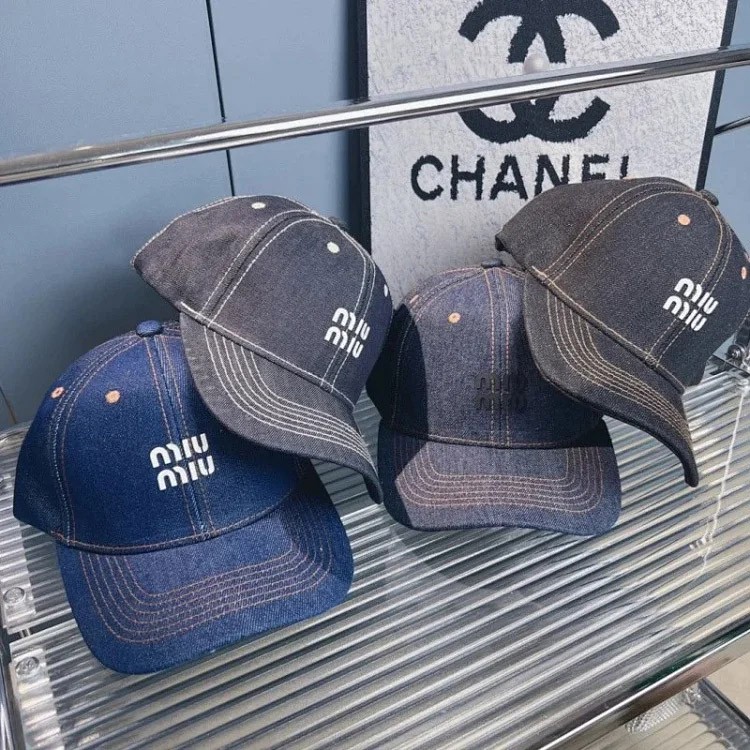 Miu Miu Distressed Soft Top Denim Baumwolle Sonnenschutz Baseball Cap-2728