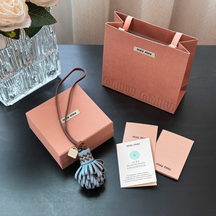 MIUMIU Leder Quaste Blumen Tasche Lanyard Anhänger-3555