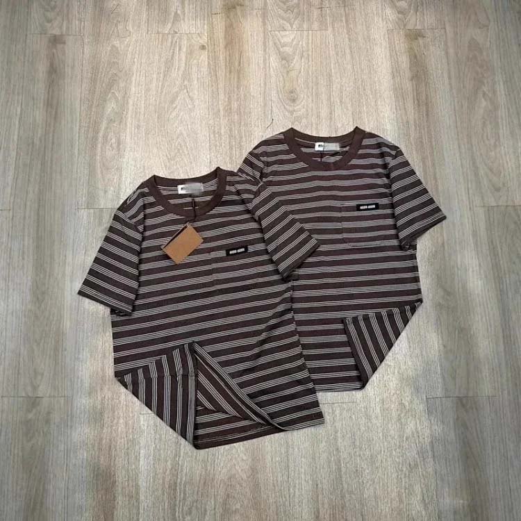 MIUMIU Buchstabe gestreiftes rundes Hals kurzärmeliges T-Shirt locker schichtig reine Baumwolle unis