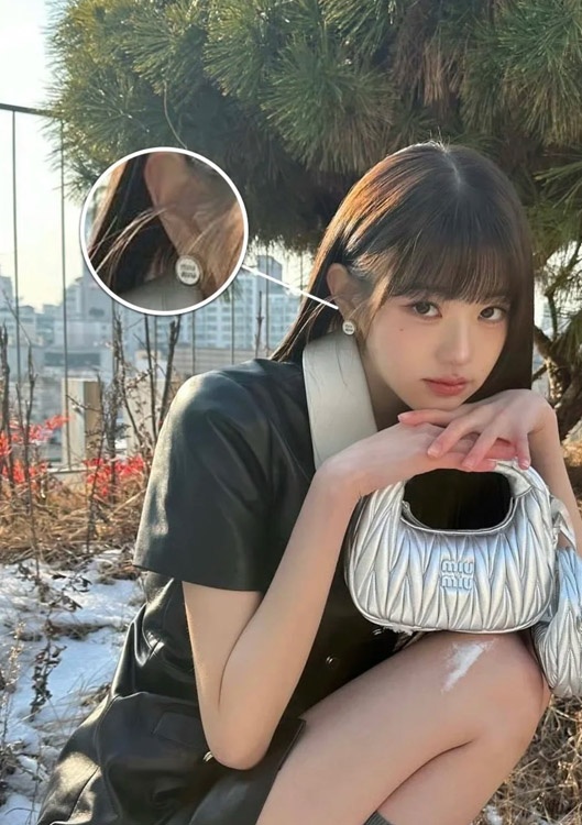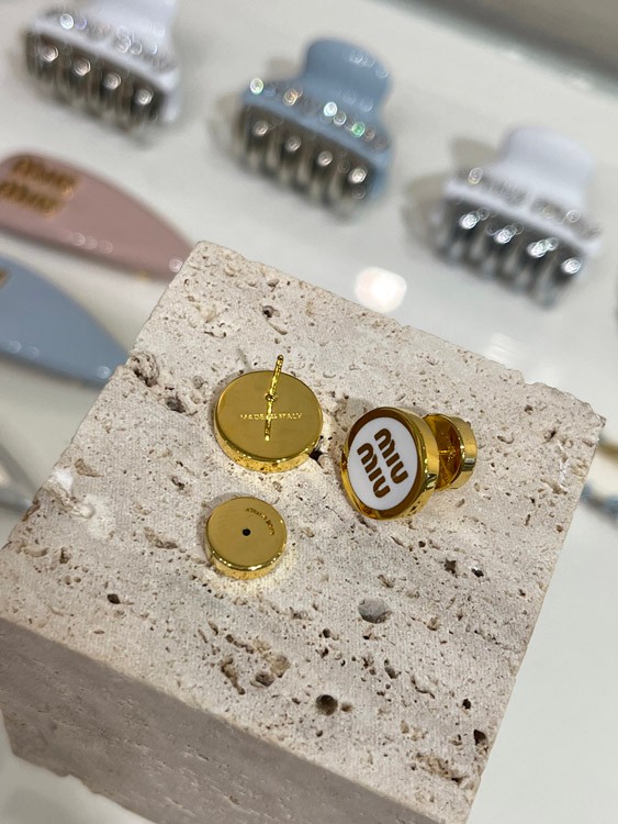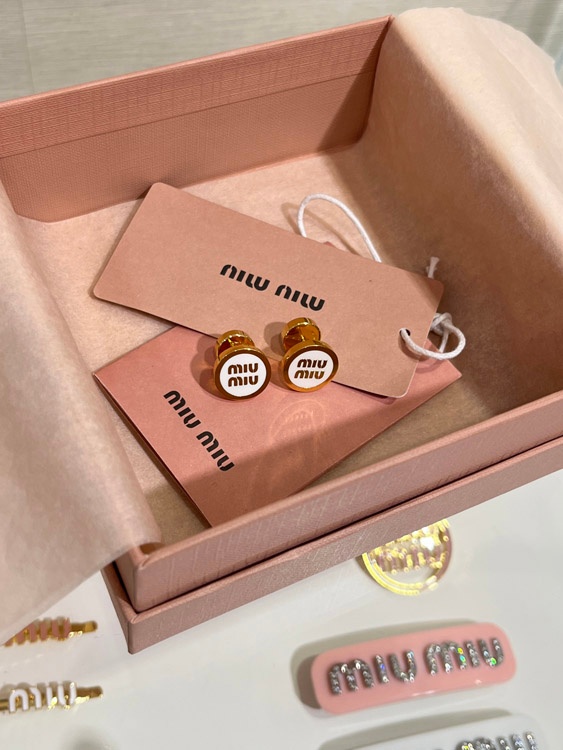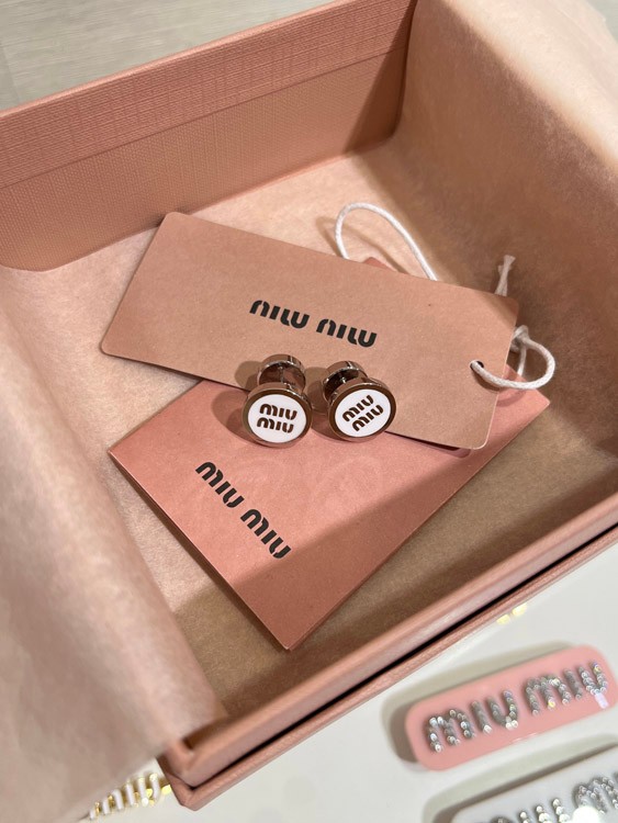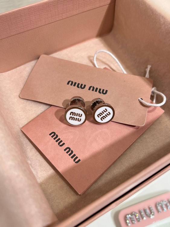 MIUMIU weiße Emaille Buchstabe Metall runde Knopf Ohrringe-3892