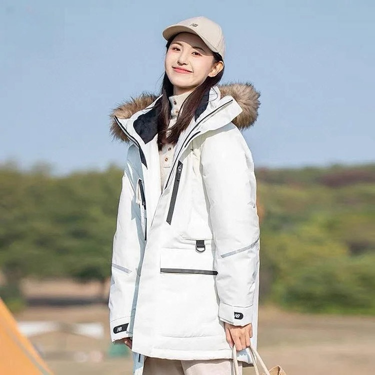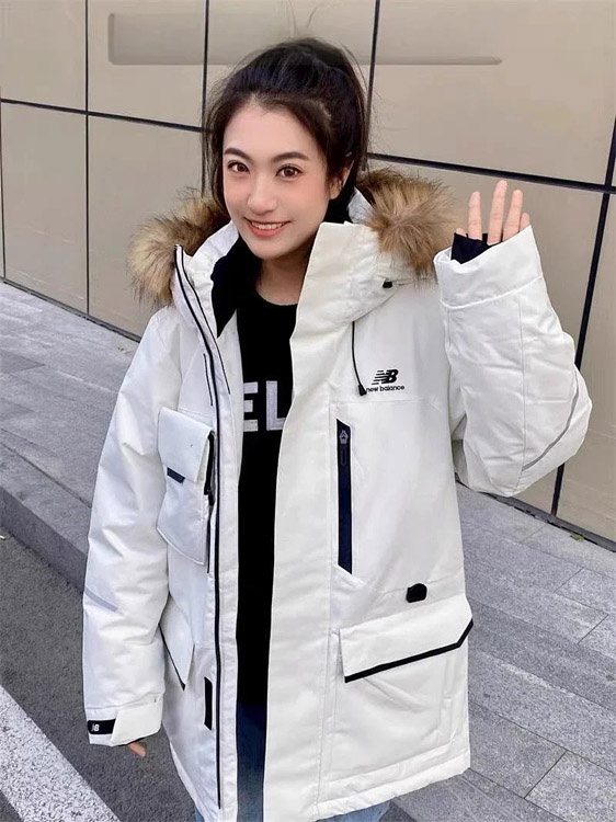 New Balance gestickte Sport Reißverschluss Kapuze mittlere Länge Arbeitskleidung Daunenjacke-4264