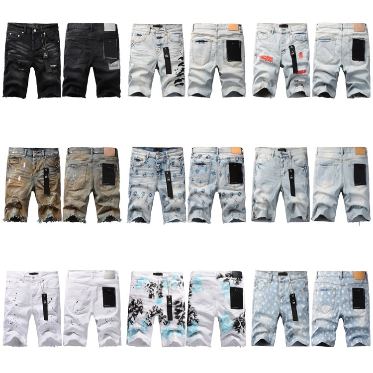 Lila Brandneue Jeans Shorts elastische zerrissene Patch slim fit Casual Shorts-4255