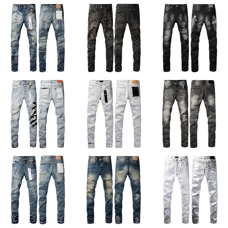 Lila Marke gerissen Patch gestört slim fit Mode Jeans-4249