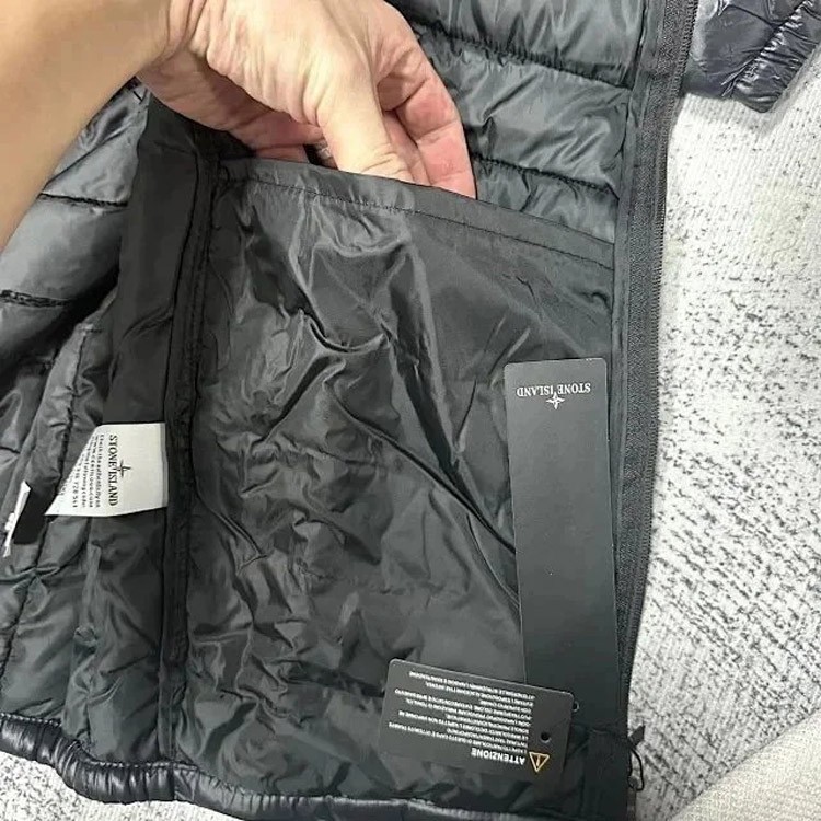 Stone Island Kapuze Reißverschluss Stand Kragen Patchwork Design Daunenjacke-4393
